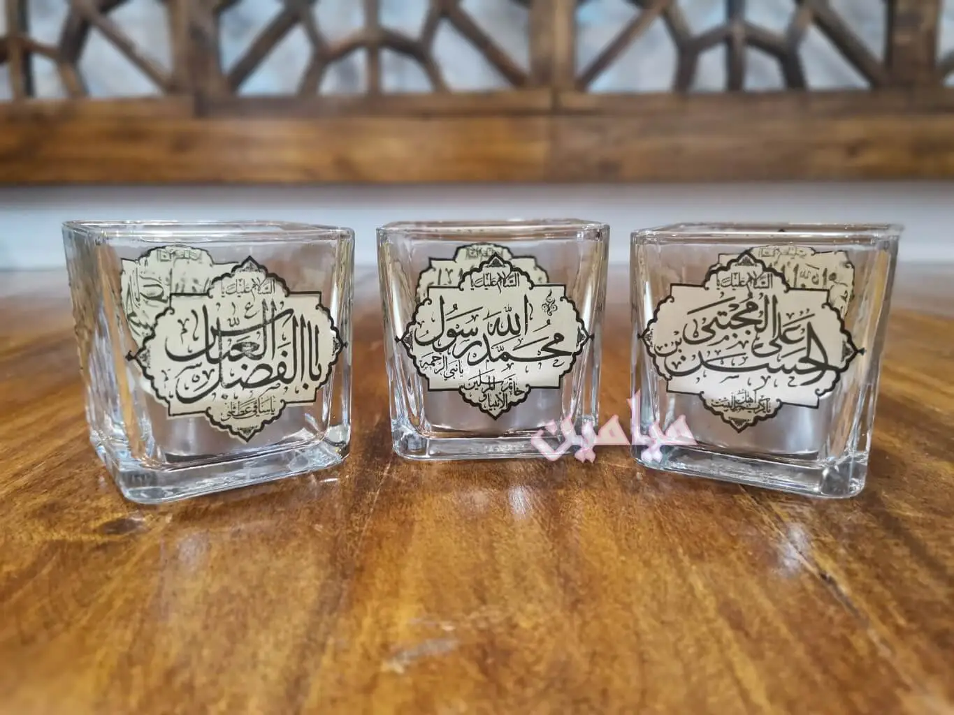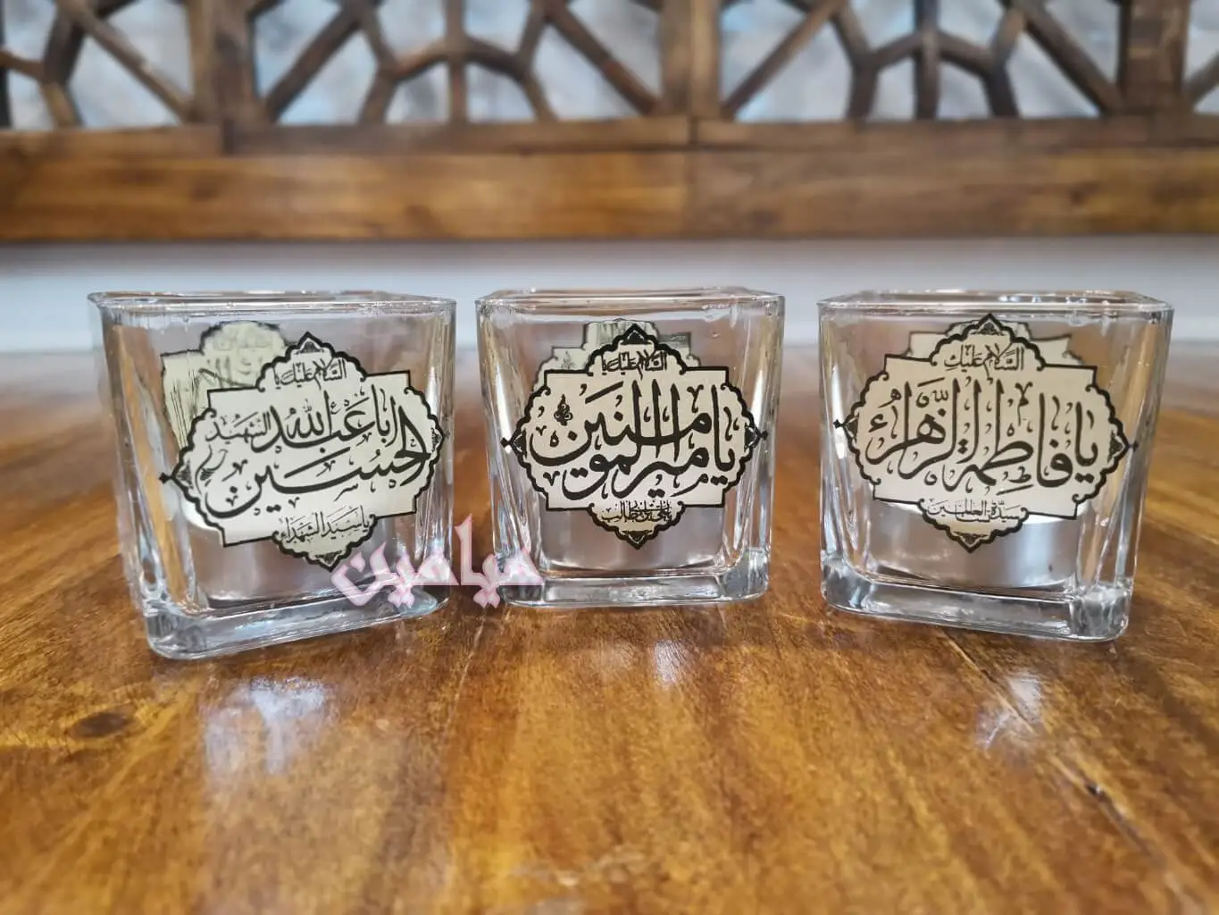 جاشمعی بلور طرح محرم و نام مبارک ائمه اطهار🕯️| بهمراه شمع وارمر | دارای بسته بندی محکم | تک و عمده