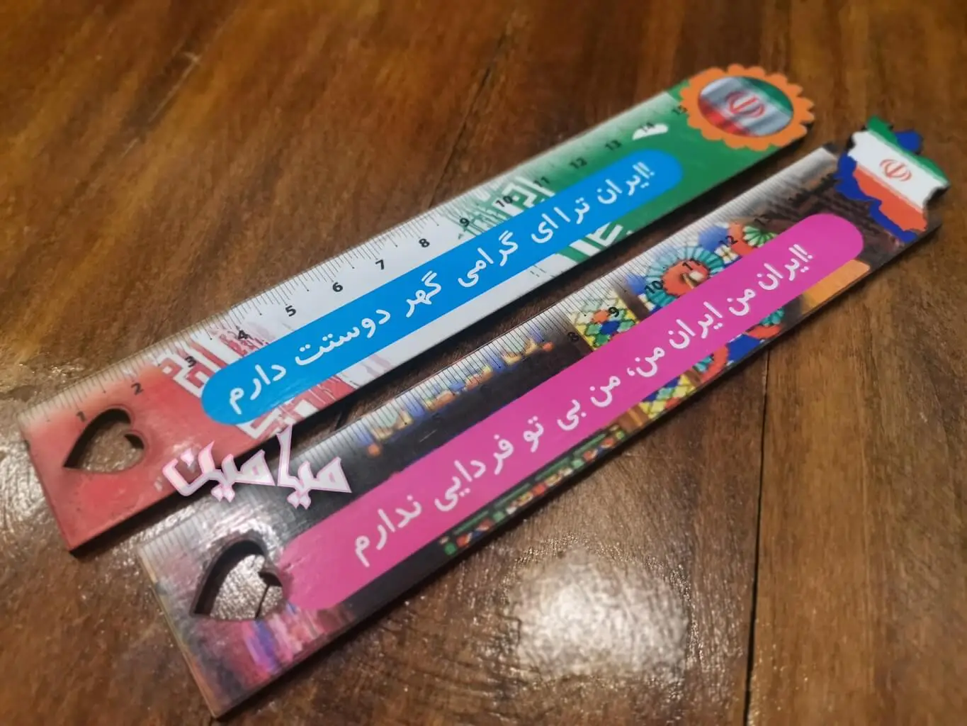 خط کش چوبی طرح پرچم ایران 🇮🇷 | انداره ۱۵ سانتی متری | تک و عمده