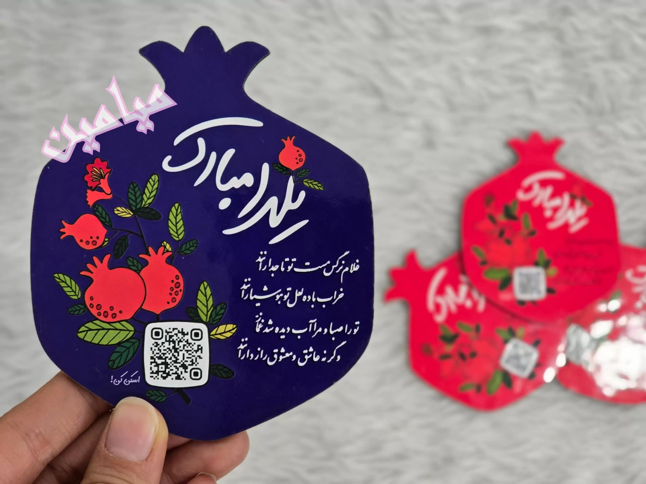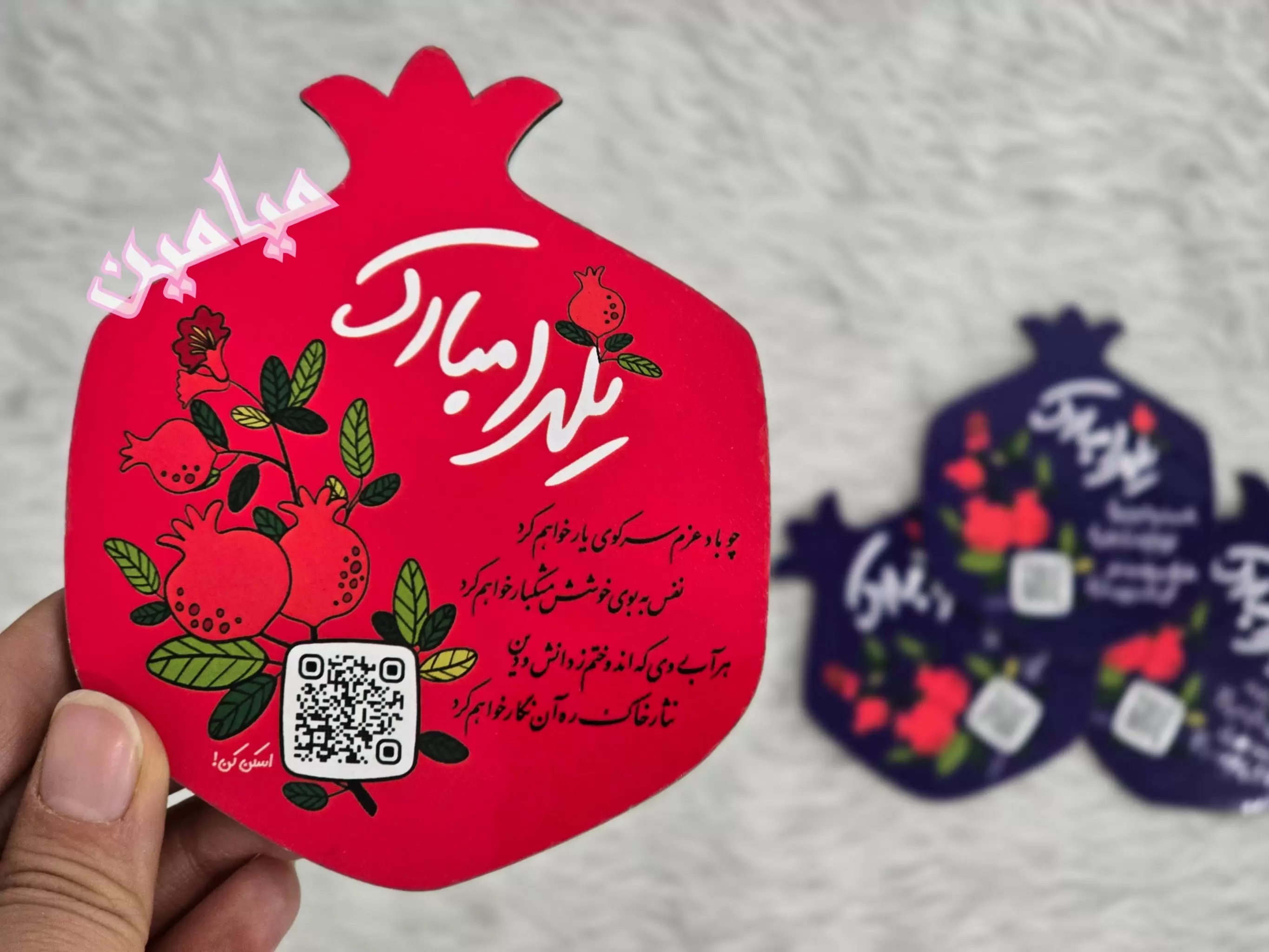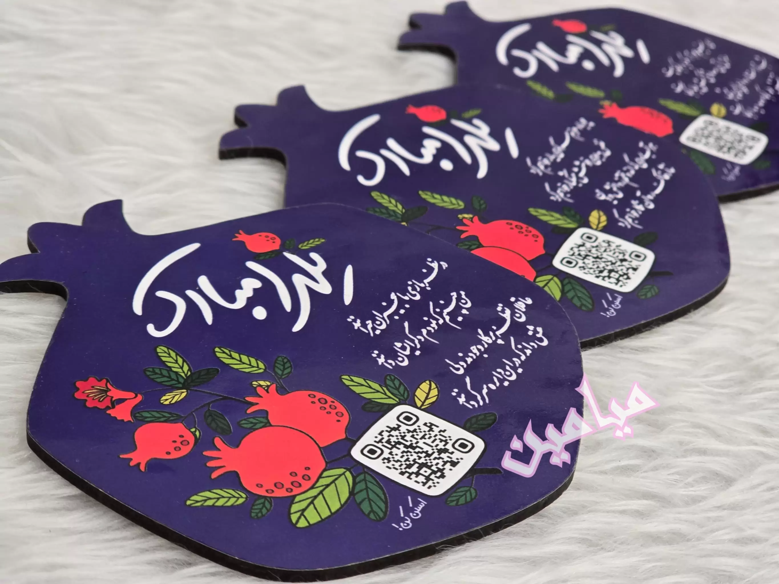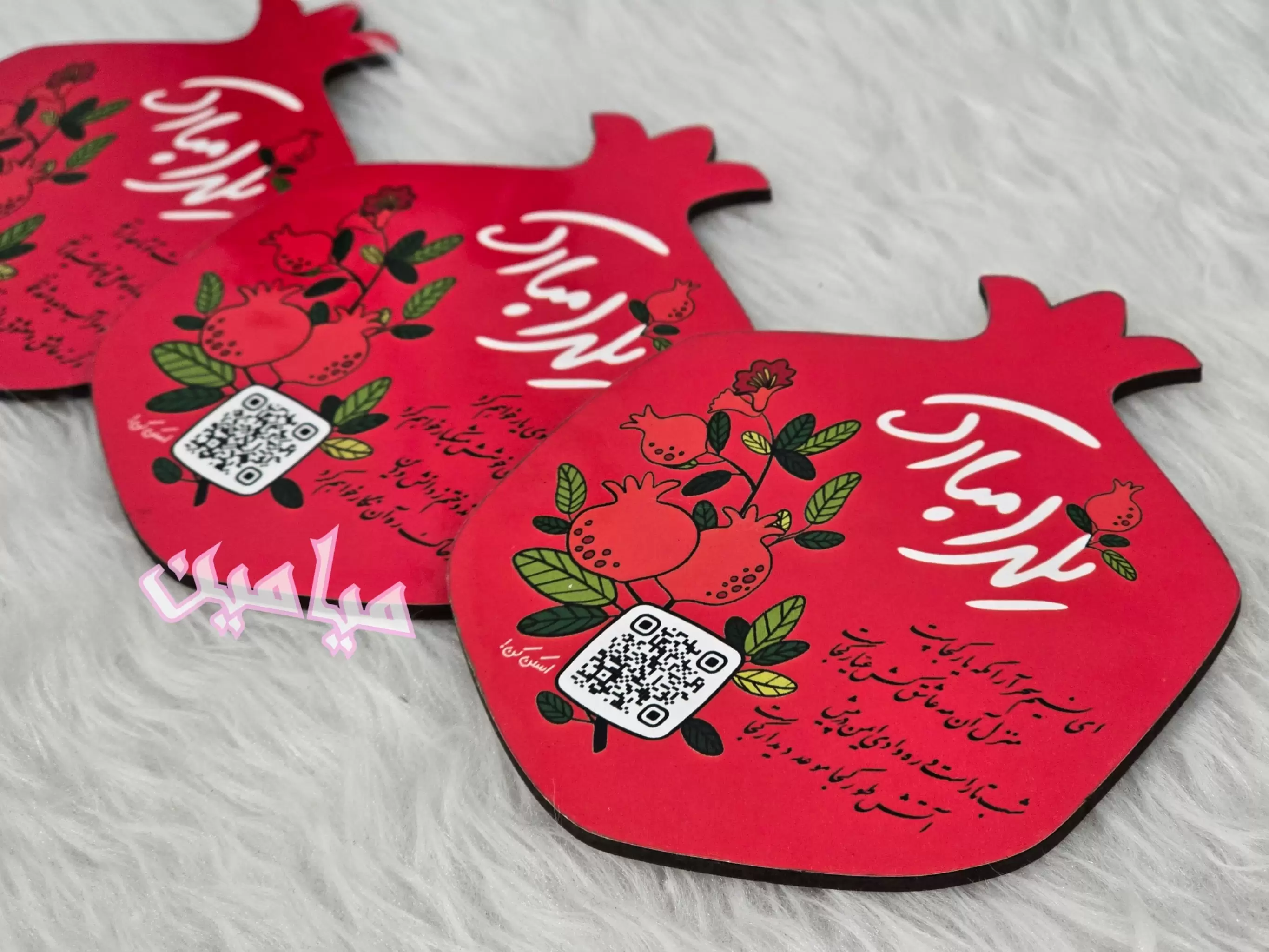 زیرلیوانی طرح انار شب یلدا ❤️| جنس چوبی | با قابلیت اسکن فال حافظ | تک و عمده