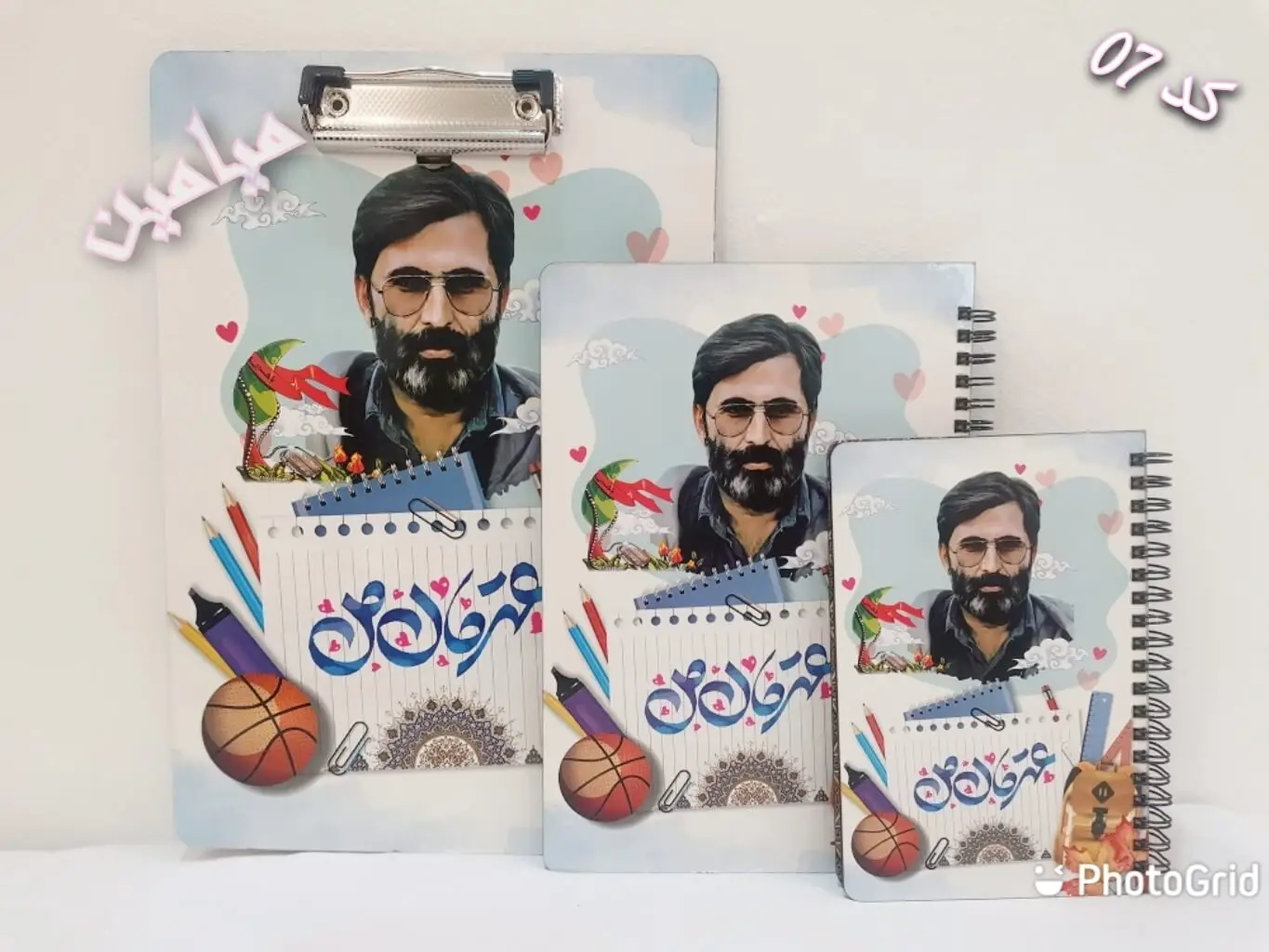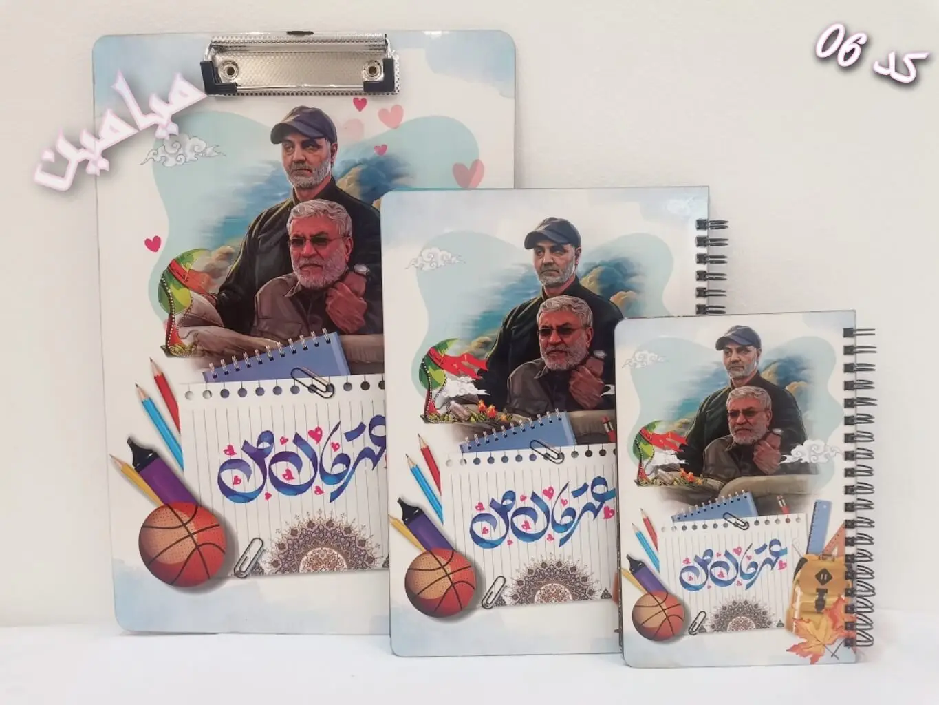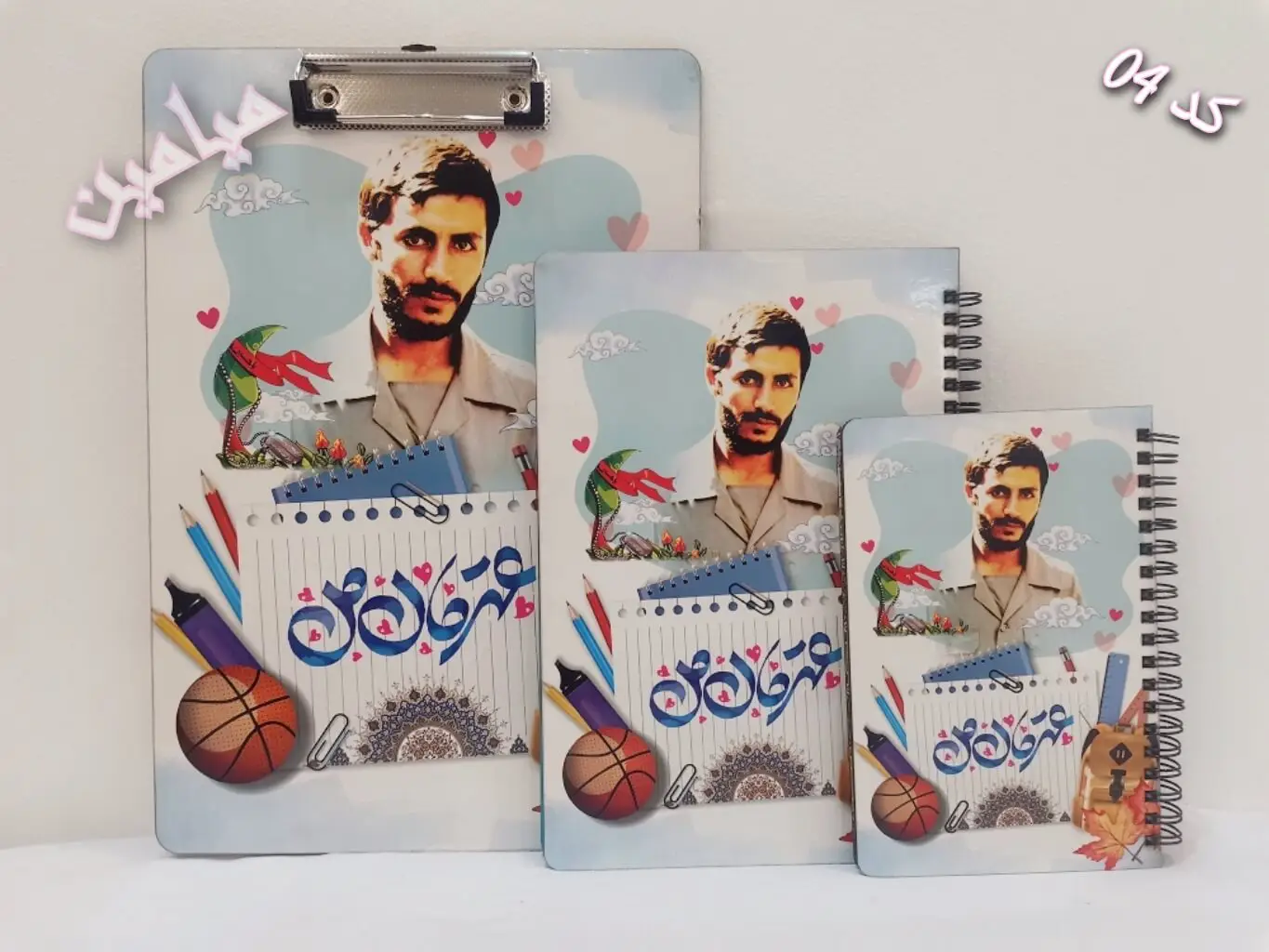 ست نوشت افزار ایرانی اسلامی سری قهرمان من 😍 | تخته شاسی، دفتر و دفترچه | چوبی | تنوع ۱۰ طرح جذاب شهدایی | تک و عمده