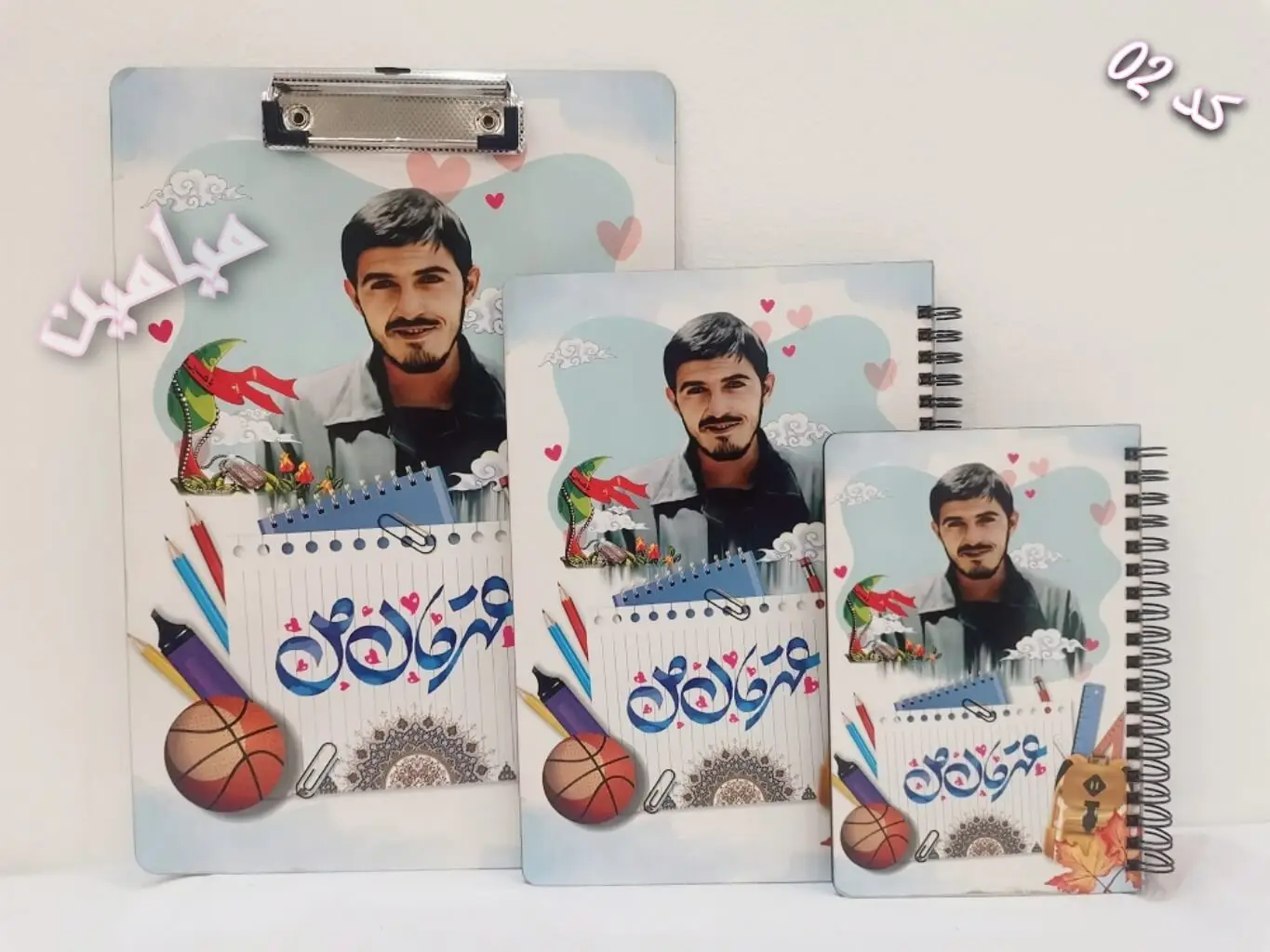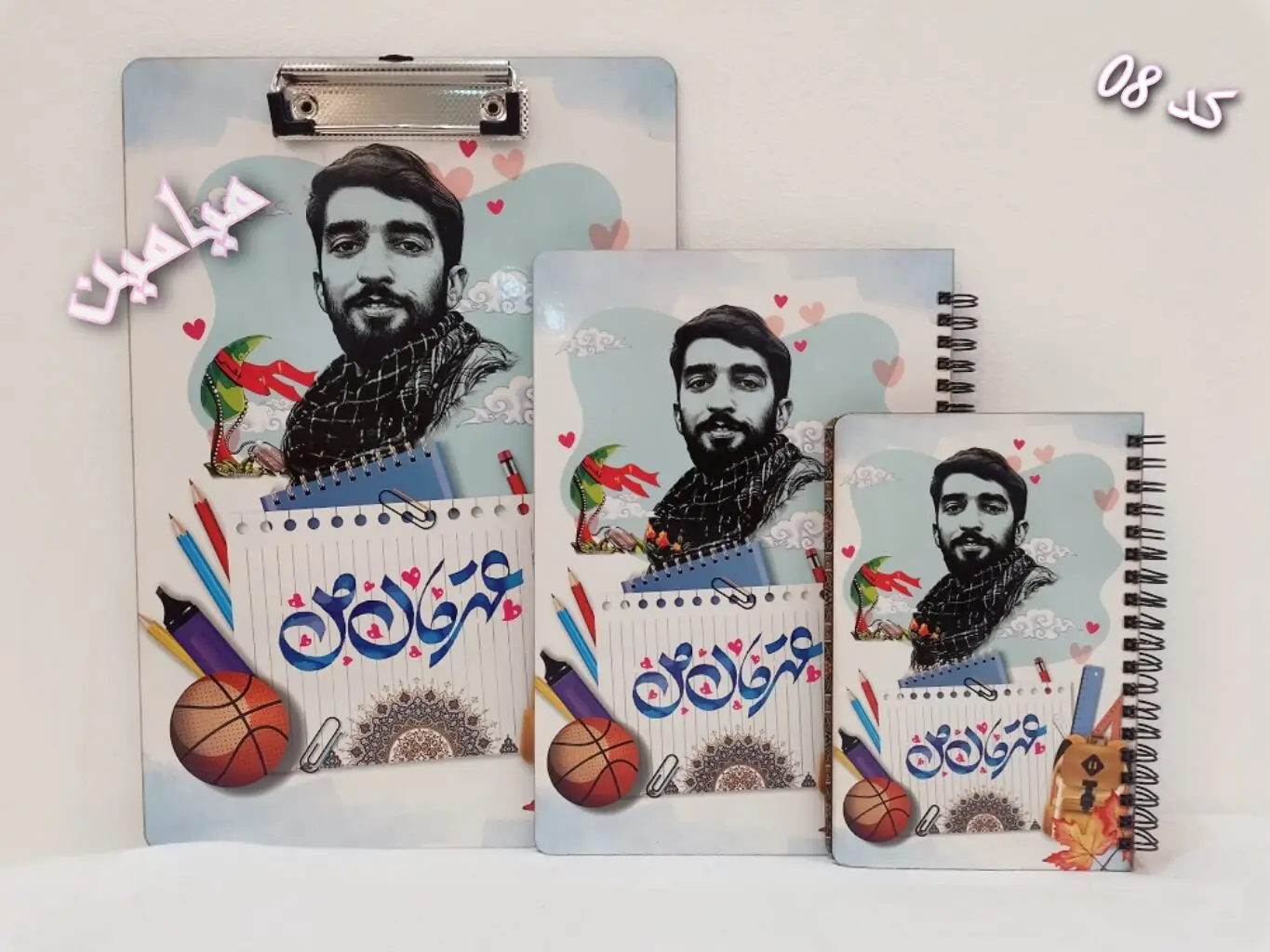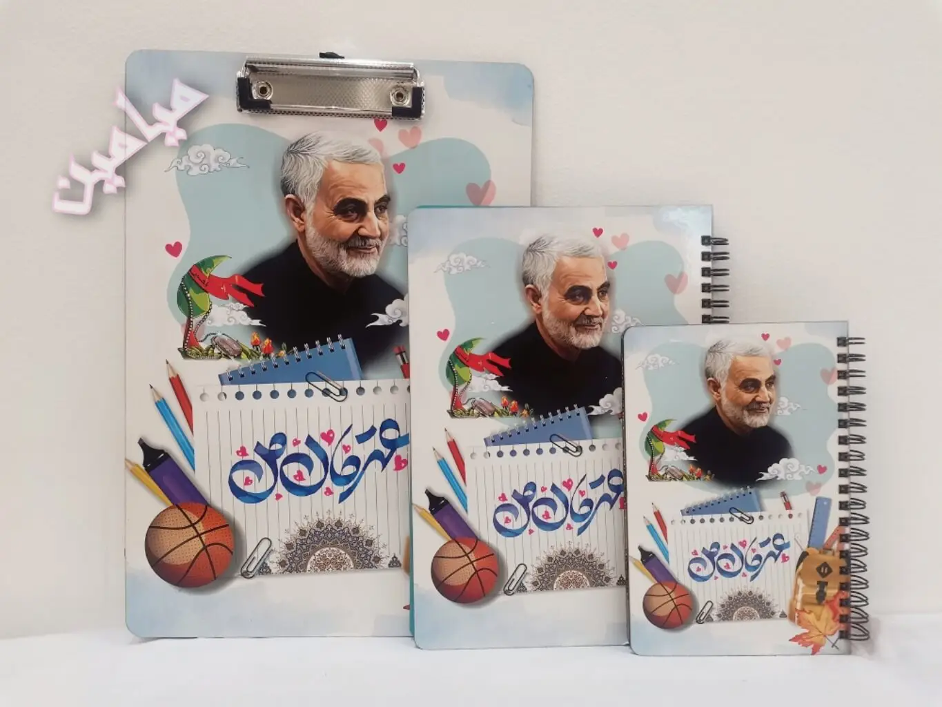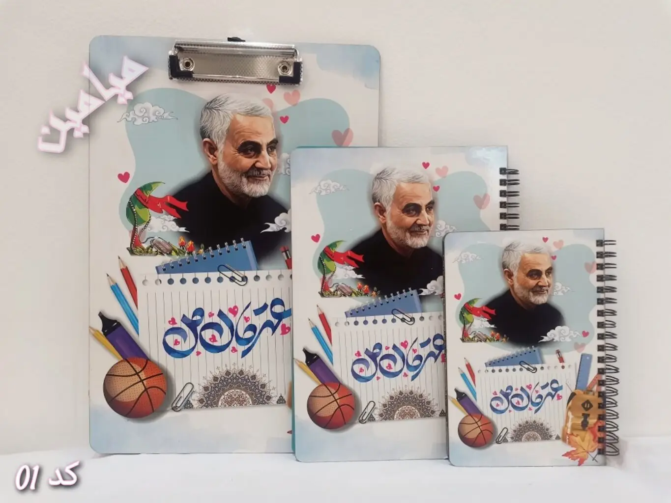 ست نوشت افزار ایرانی اسلامی سری قهرمان من 😍 | تخته شاسی، دفتر و دفترچه | چوبی | تنوع ۱۰ طرح جذاب شهدایی | تک و عمده