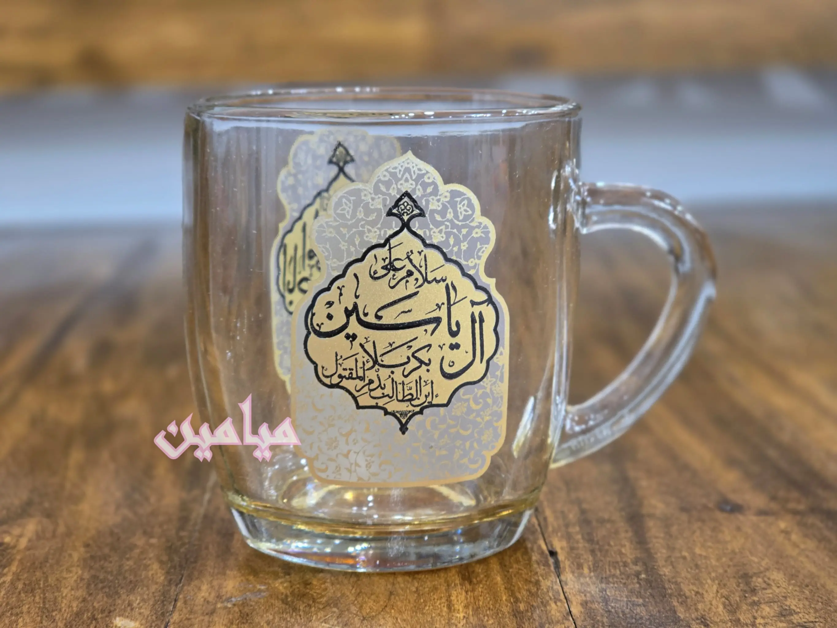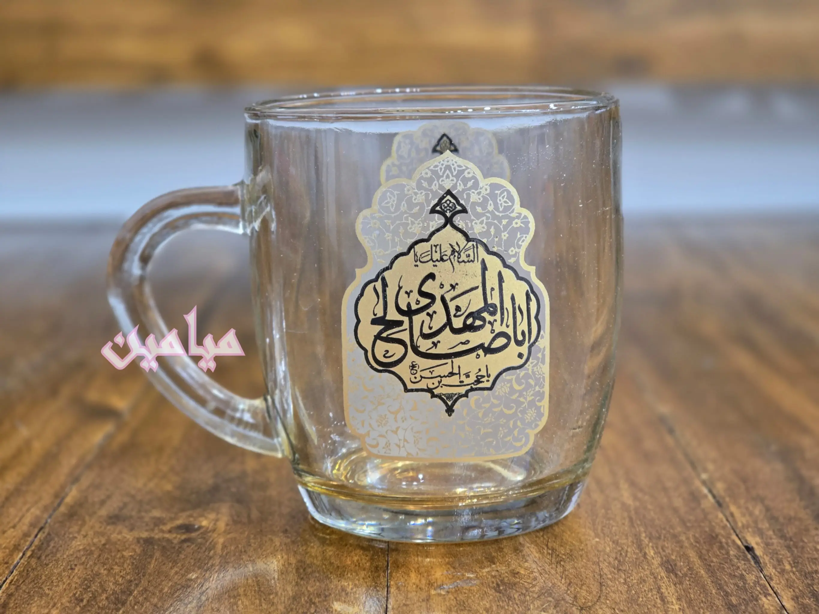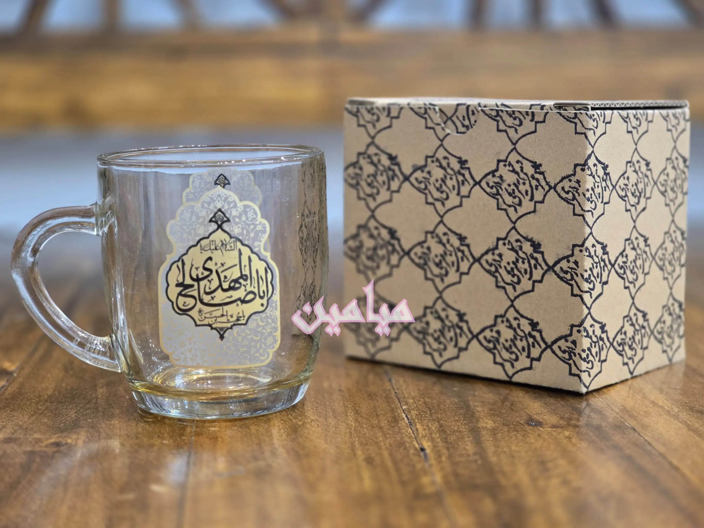 لیوان شیشه ای دسته دار امام زمانی ❤️ | چاپ طلاکوب | کیفیت چاپ تضمینی | بهمراه جعبه | تک و عمده