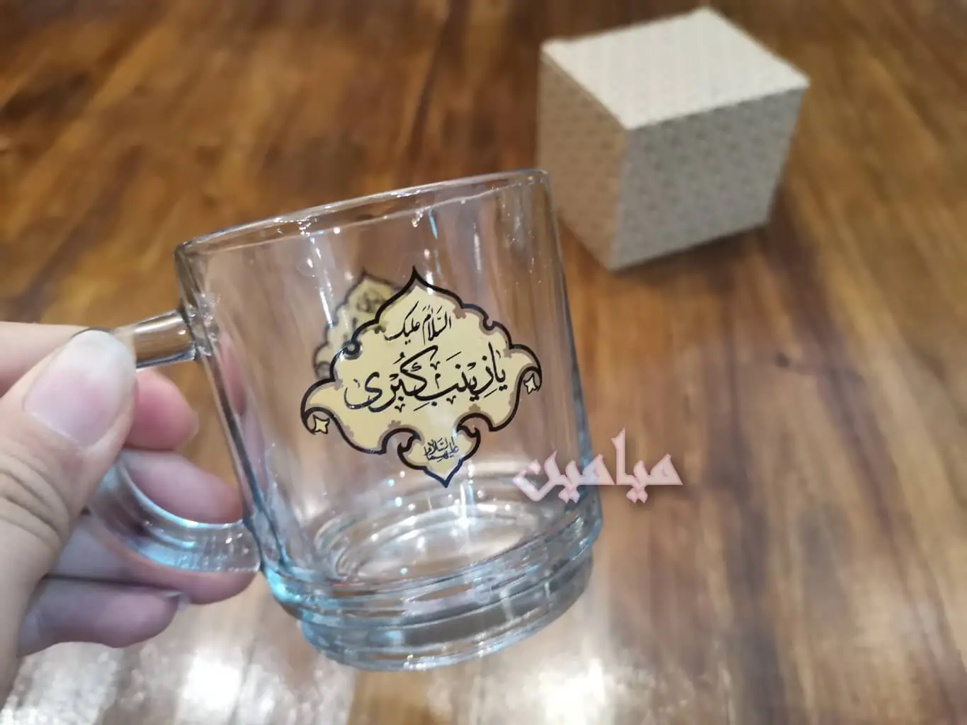 لیوان کوچک دسته دار محرمی 🖤 | طرح نام حضرت زهرا (س) و حضرت زینب کبری (س) | بهمراه جعبه | تک و عمده
