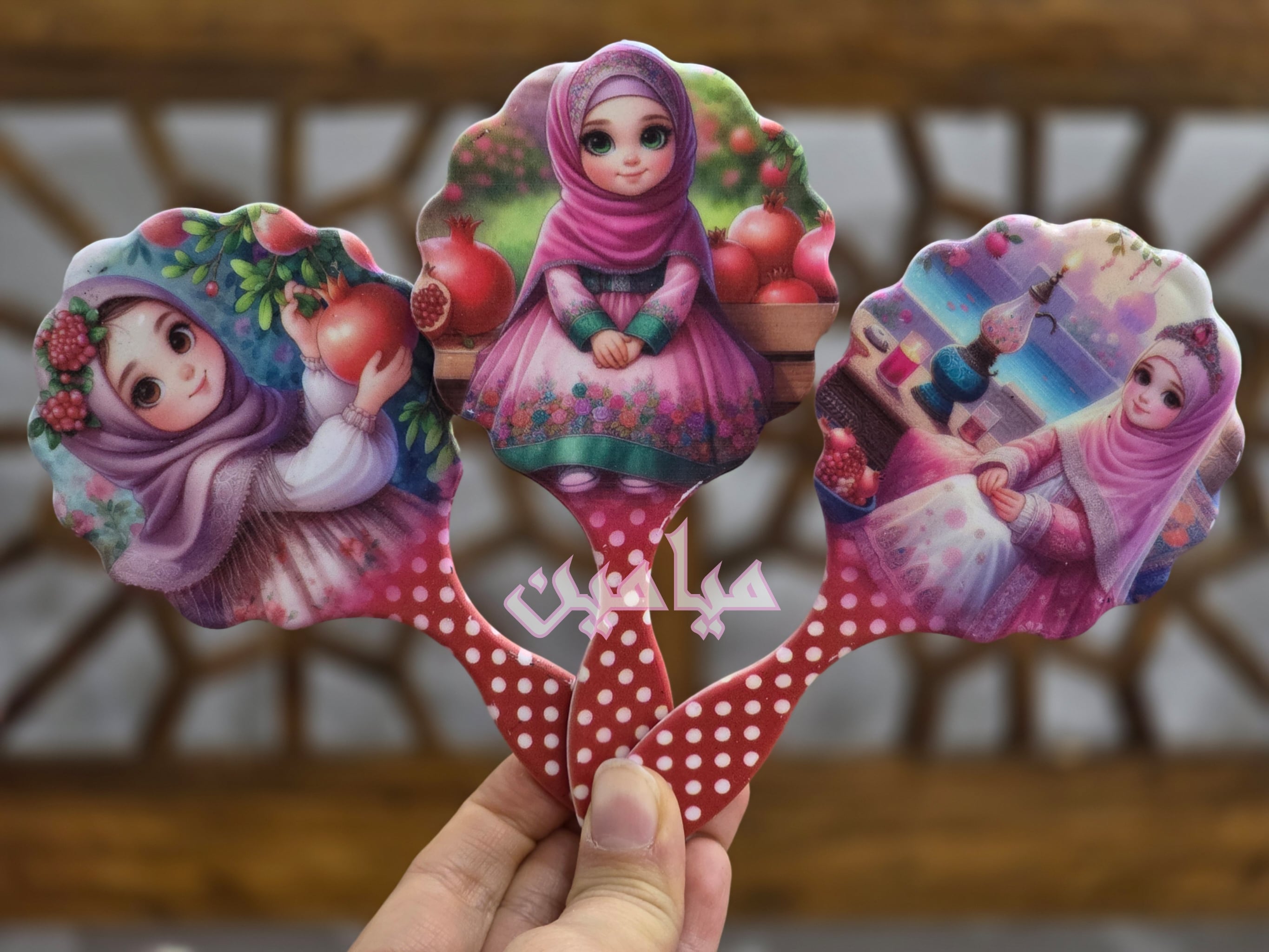 آینه دسته دار طرح دخترانه یلدایی ❤️ | تنوع طرح های زیبای دخترانه حجاب | پلاستیکی | تک و عمده