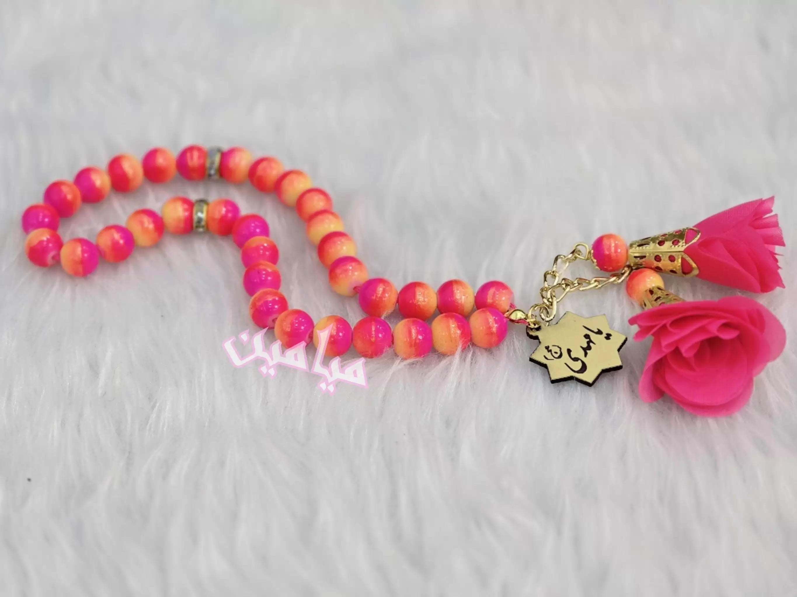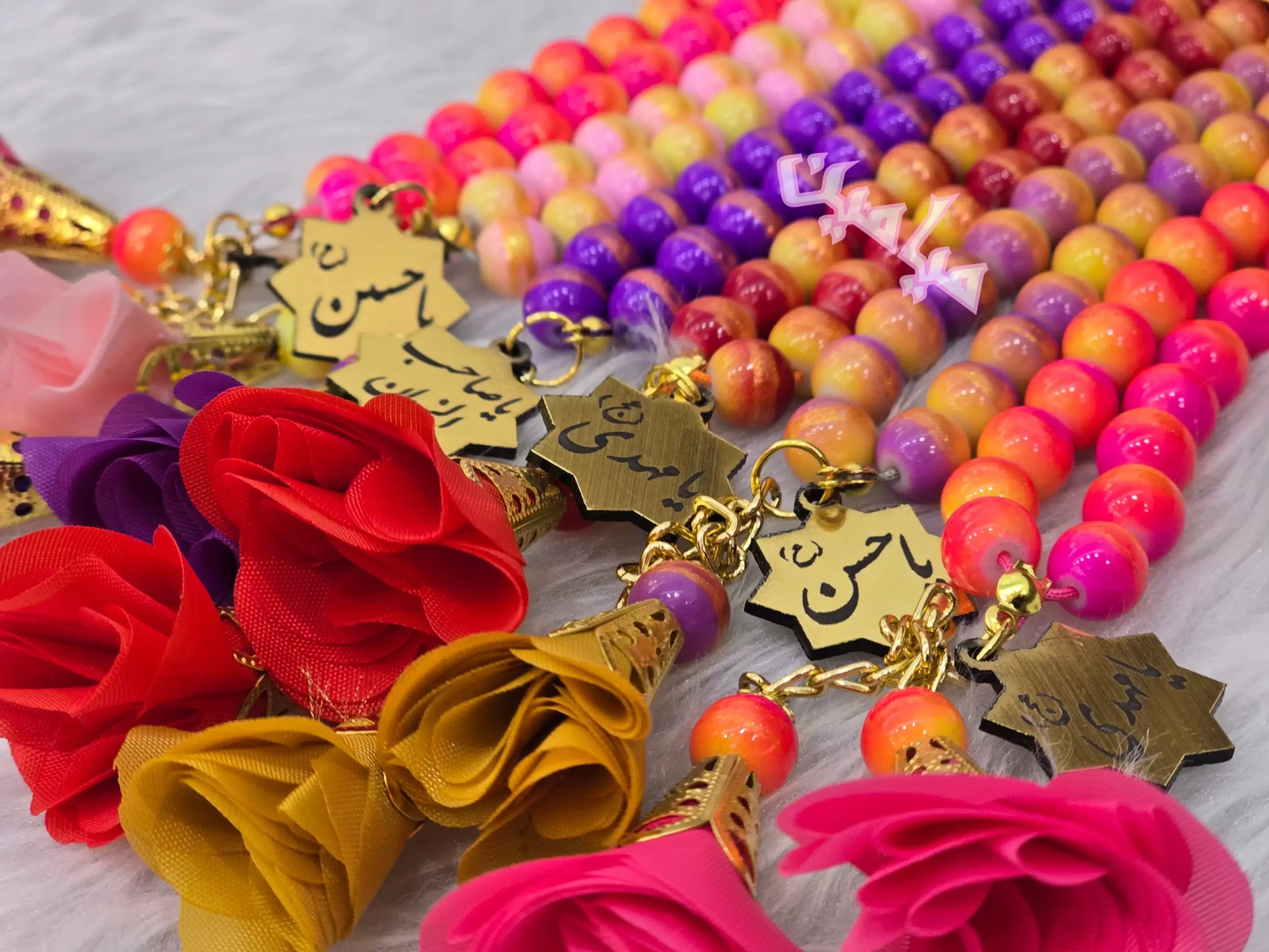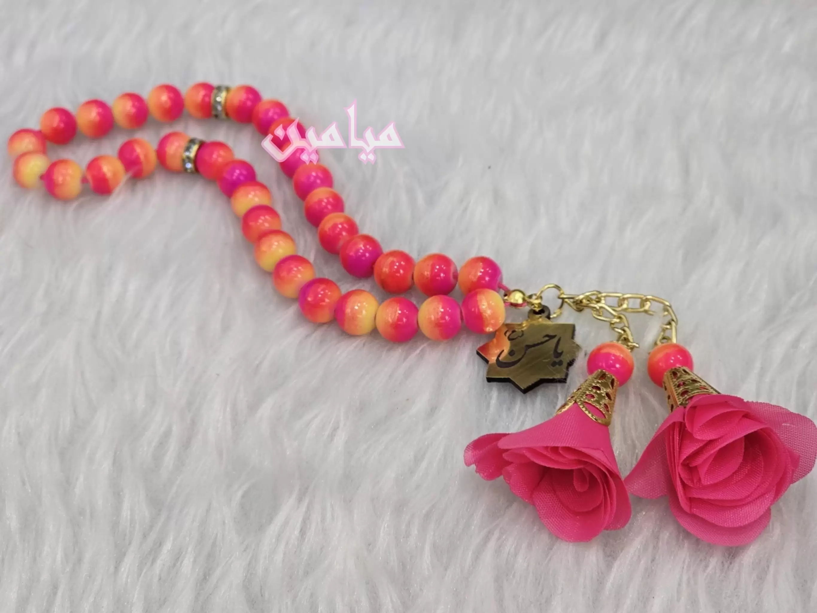 تسبیح دو رنگ گل دار و پلاک دار 🌺 | ۳۳ تایی | تنوع رنگبندی های جذاب | تک و عمده