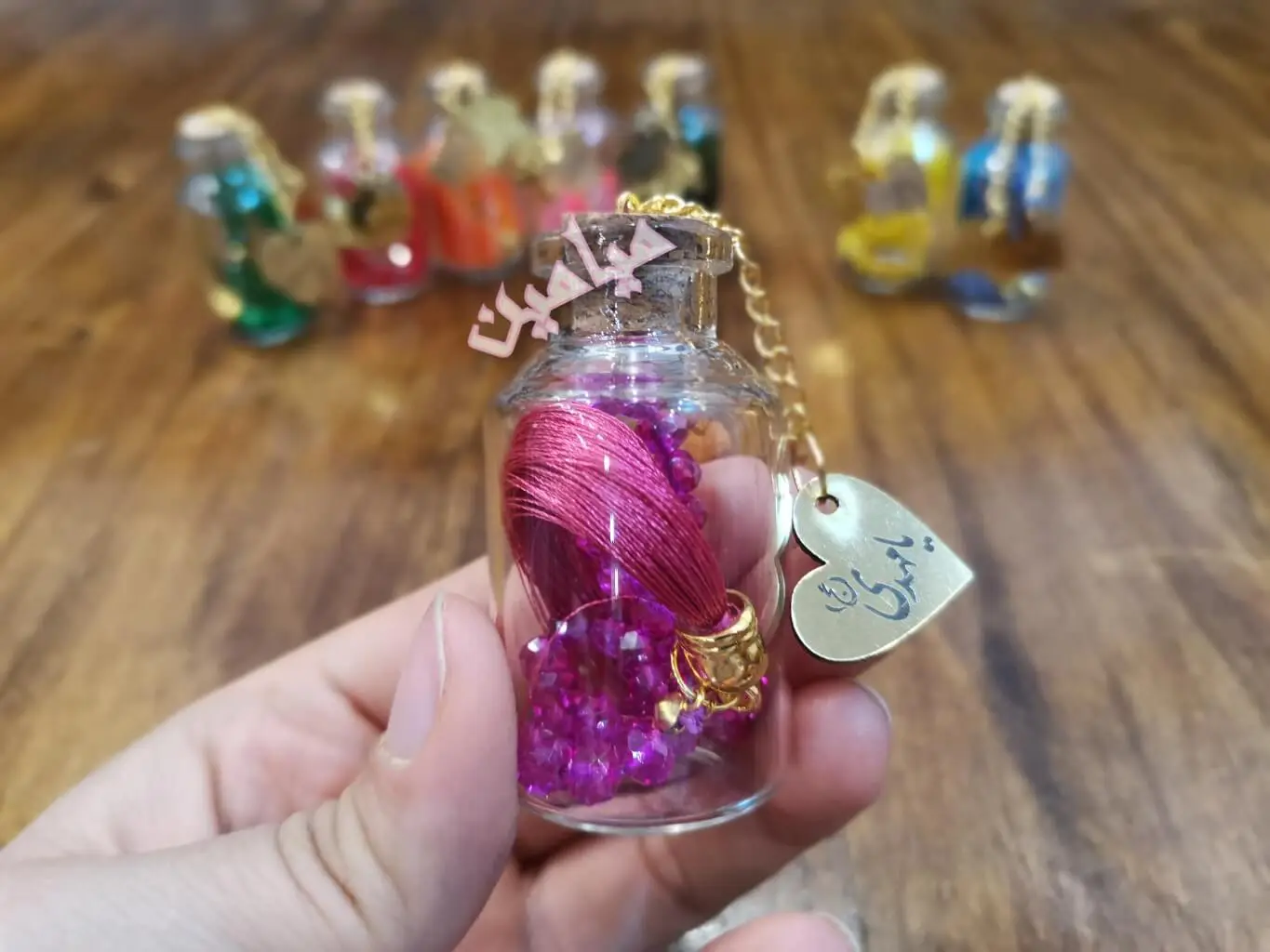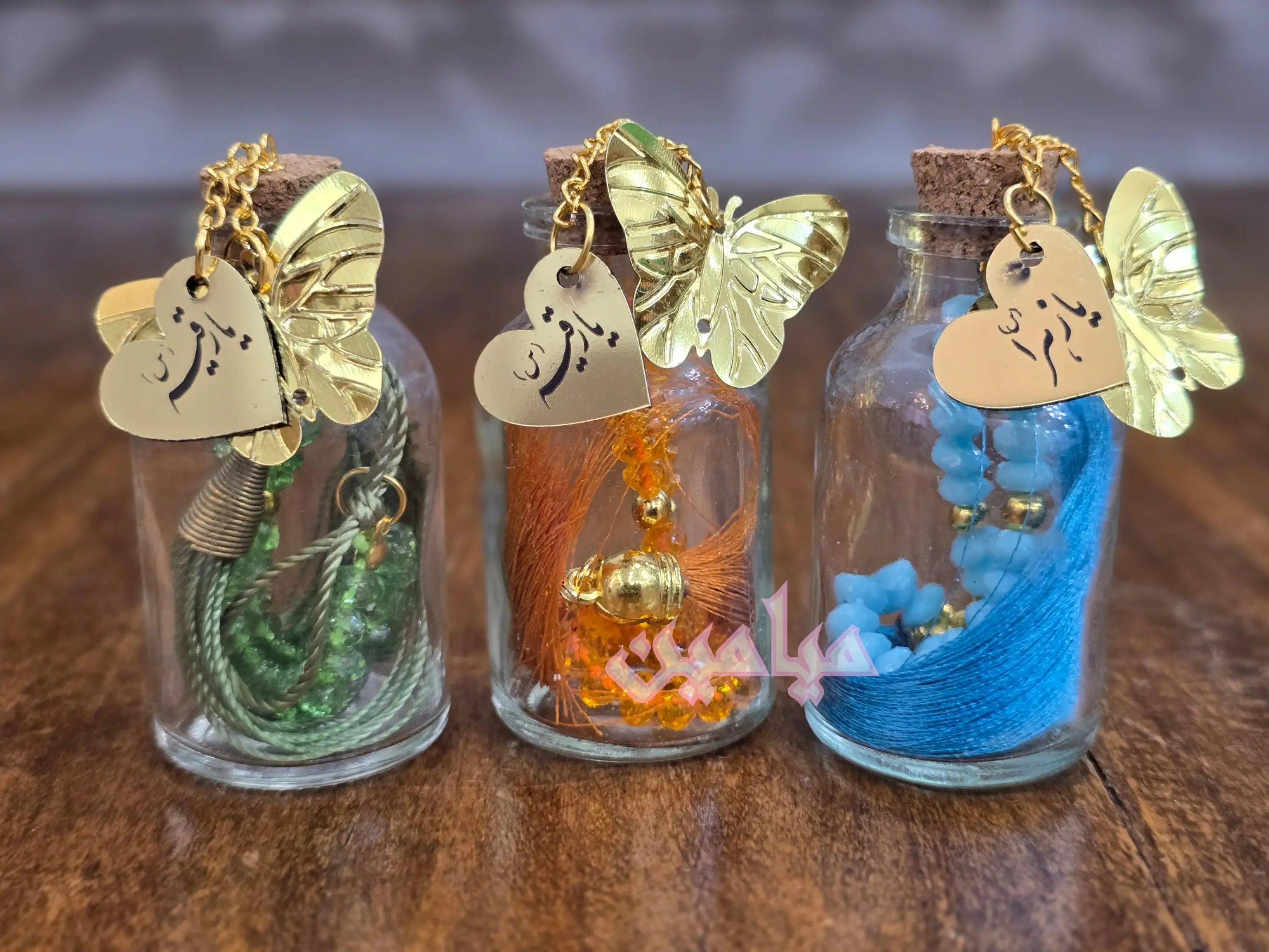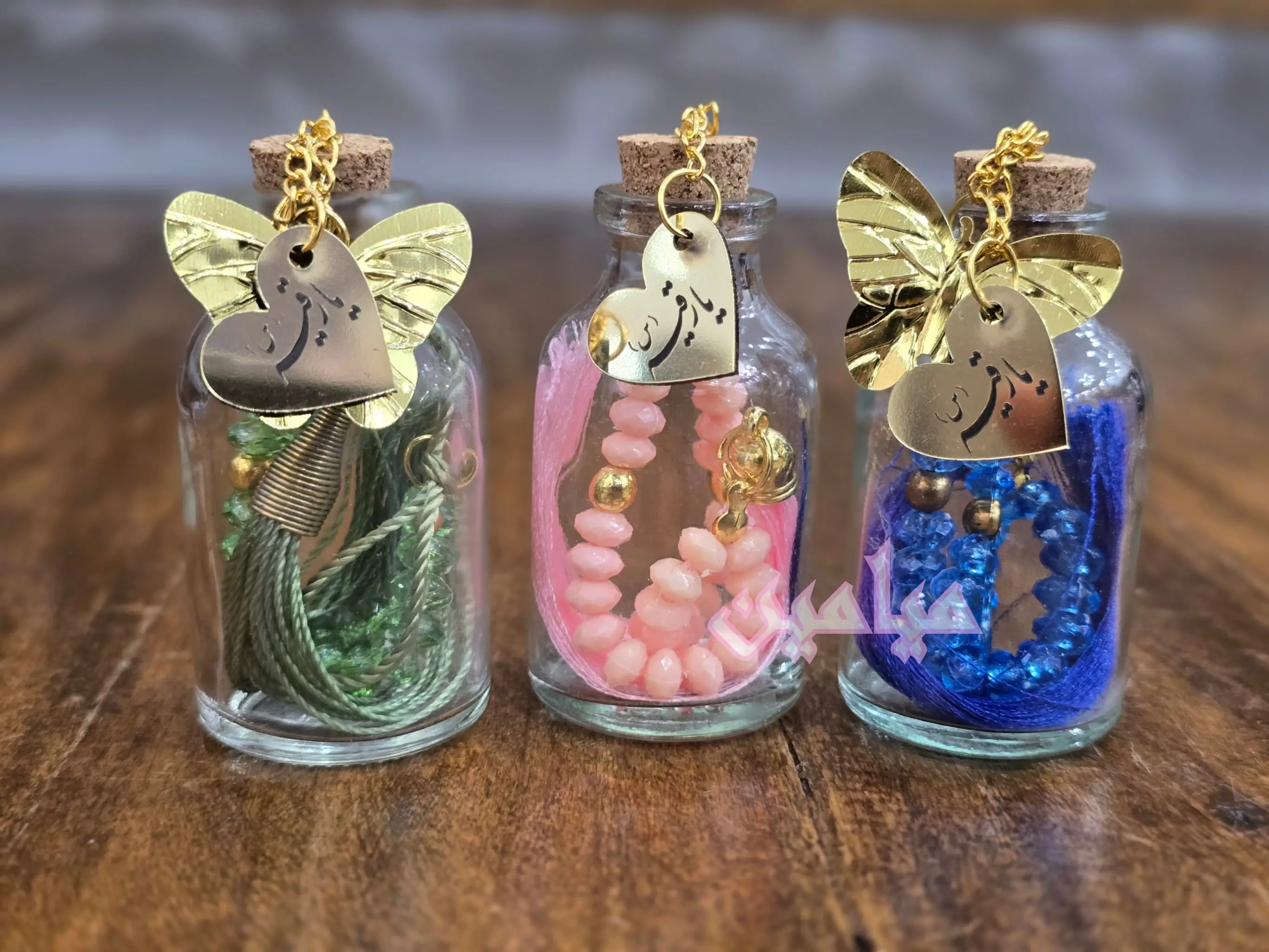 گیفت تسبیح رنگی شیشه دار ❤️ | طرح کریستال | با پلاک طلایی نام مبارک ائمه اطهار | تک و عمده