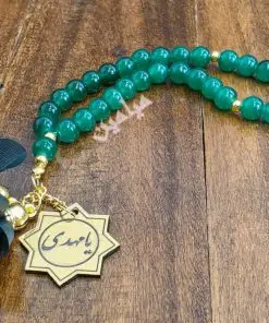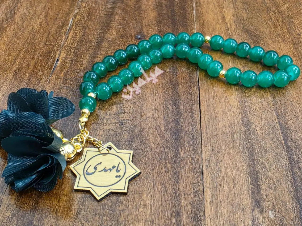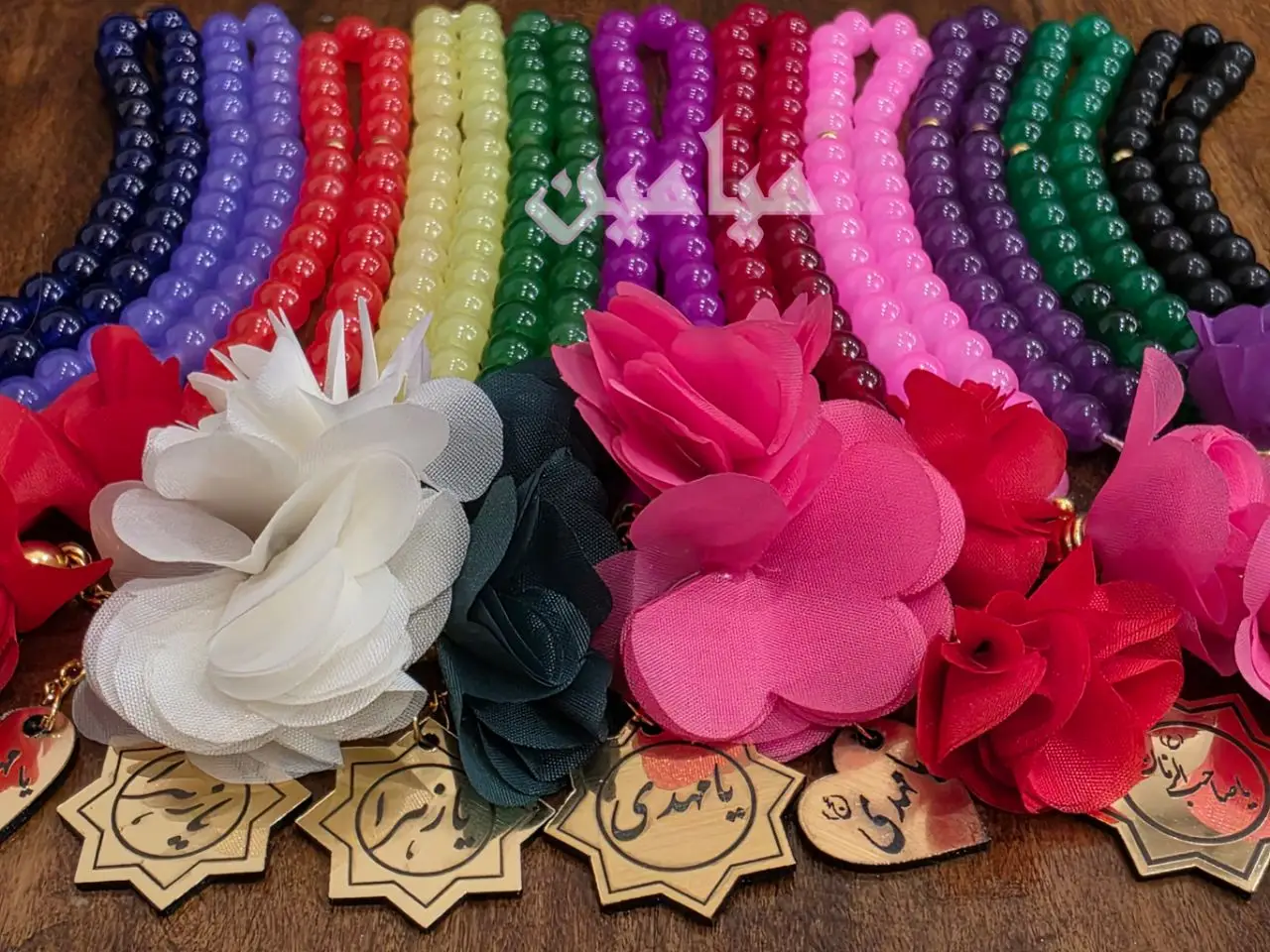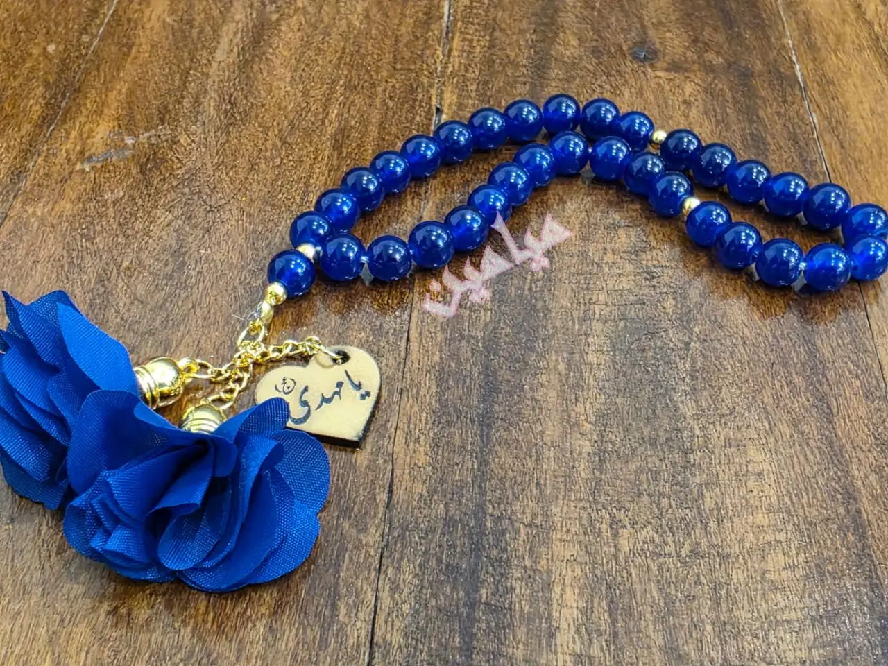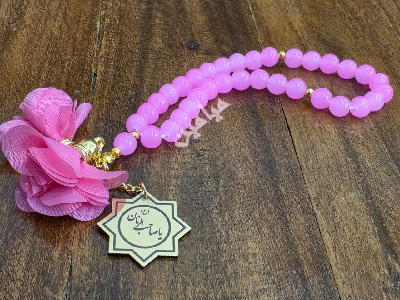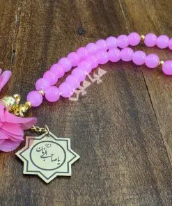 تسبیح یاقوتی گل دار و پلاک دار 😍 | با پلاک نام مبارک اهل بیت | ۳۳ تایی | تک و عمده