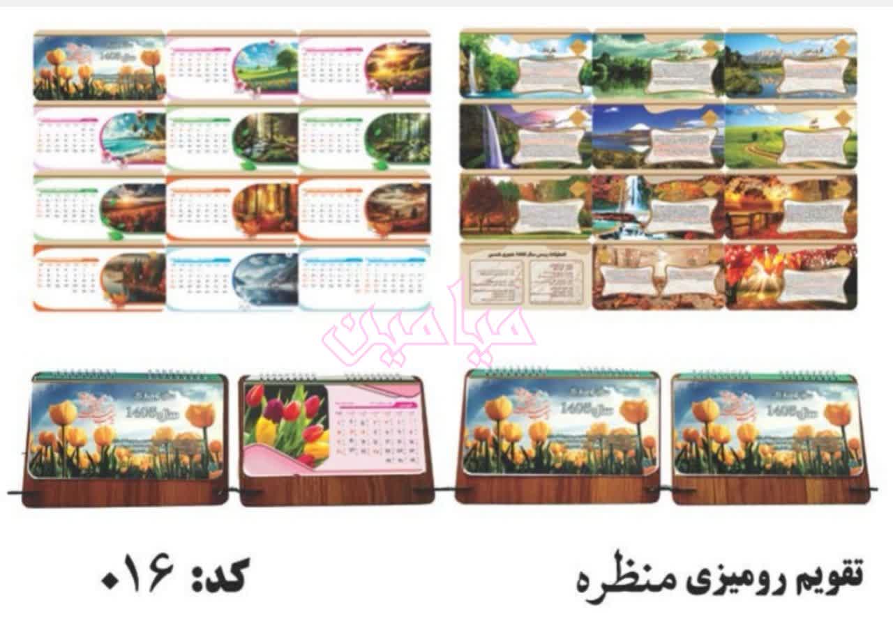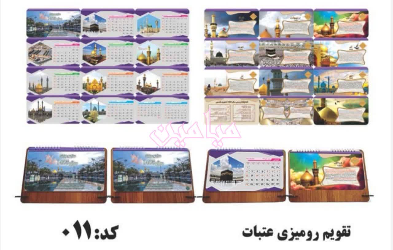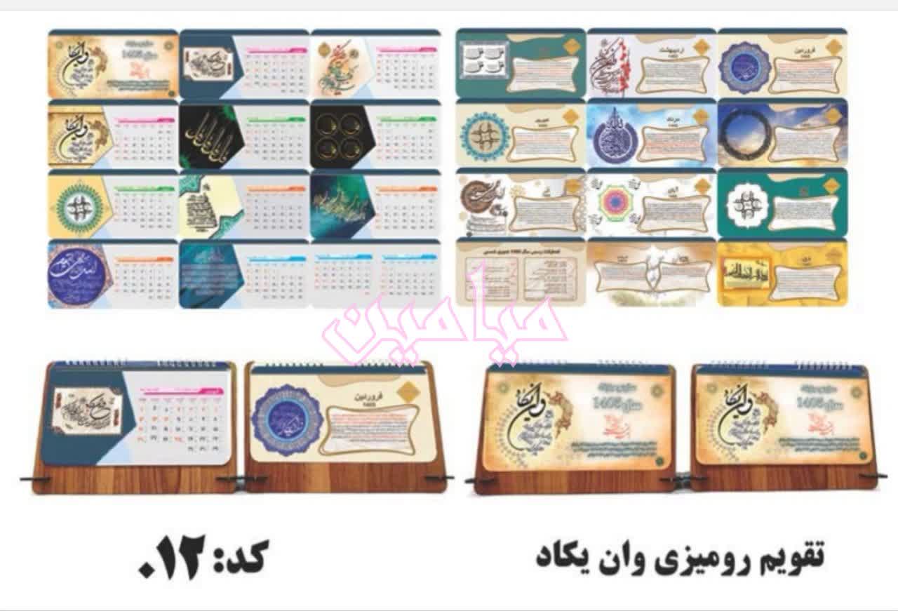 تقویم رومیزی مذهبی ۱۴۰۵ هجری شمسی 🌹 | تنوع طرح های زیبا | با پایه چوبی ام دی اف و جا خودکاری | تک و عمده