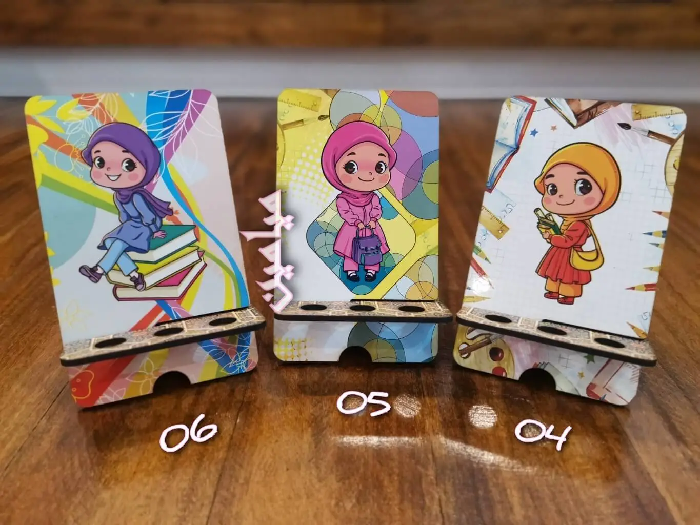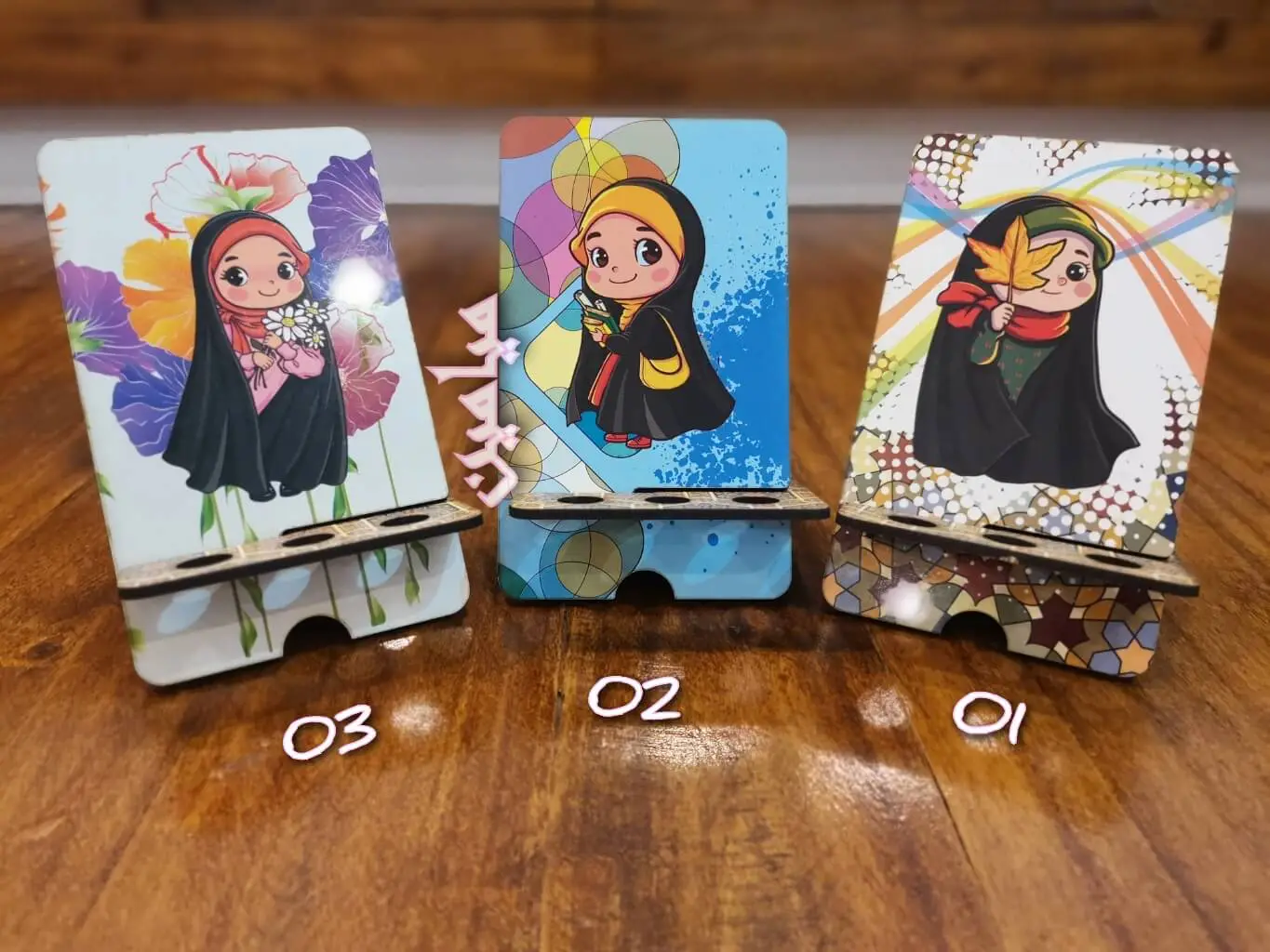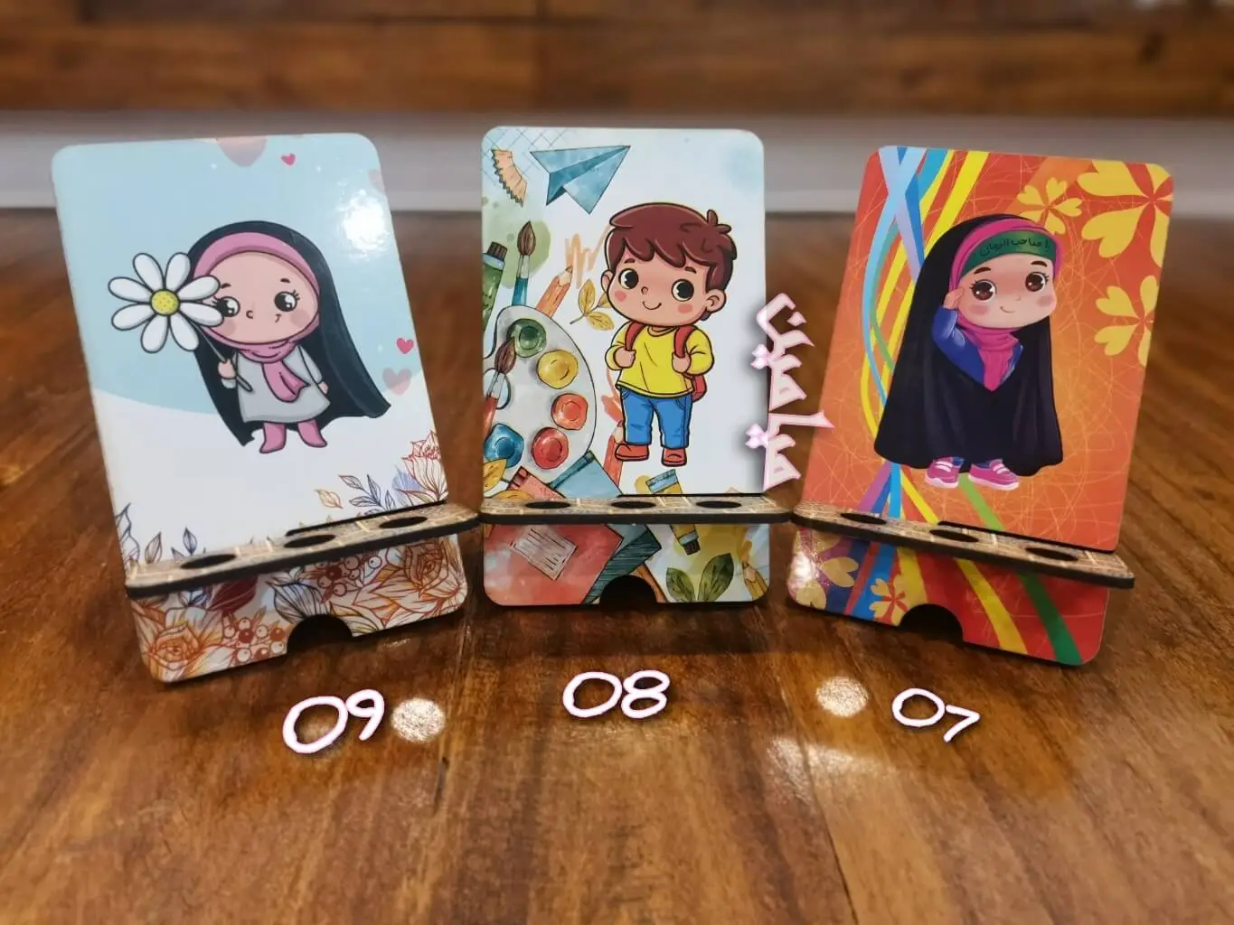 جاقلمی و هولدر موبایل چوبی طرح کودکانه مذهبی 🥰 | آینه دار | تنوع طرح های فانتزی دخترانه و پسرانه | تک و عمده