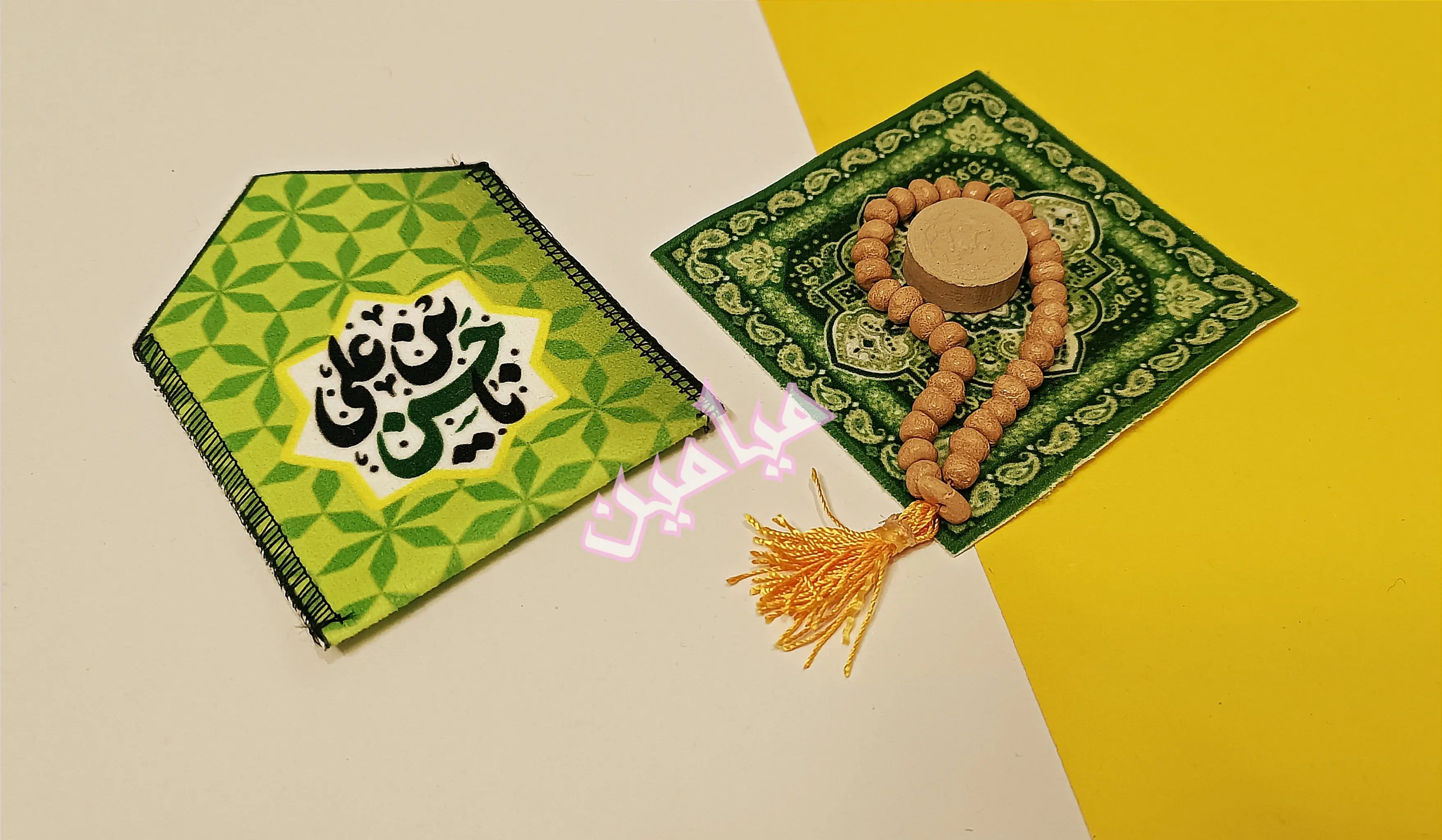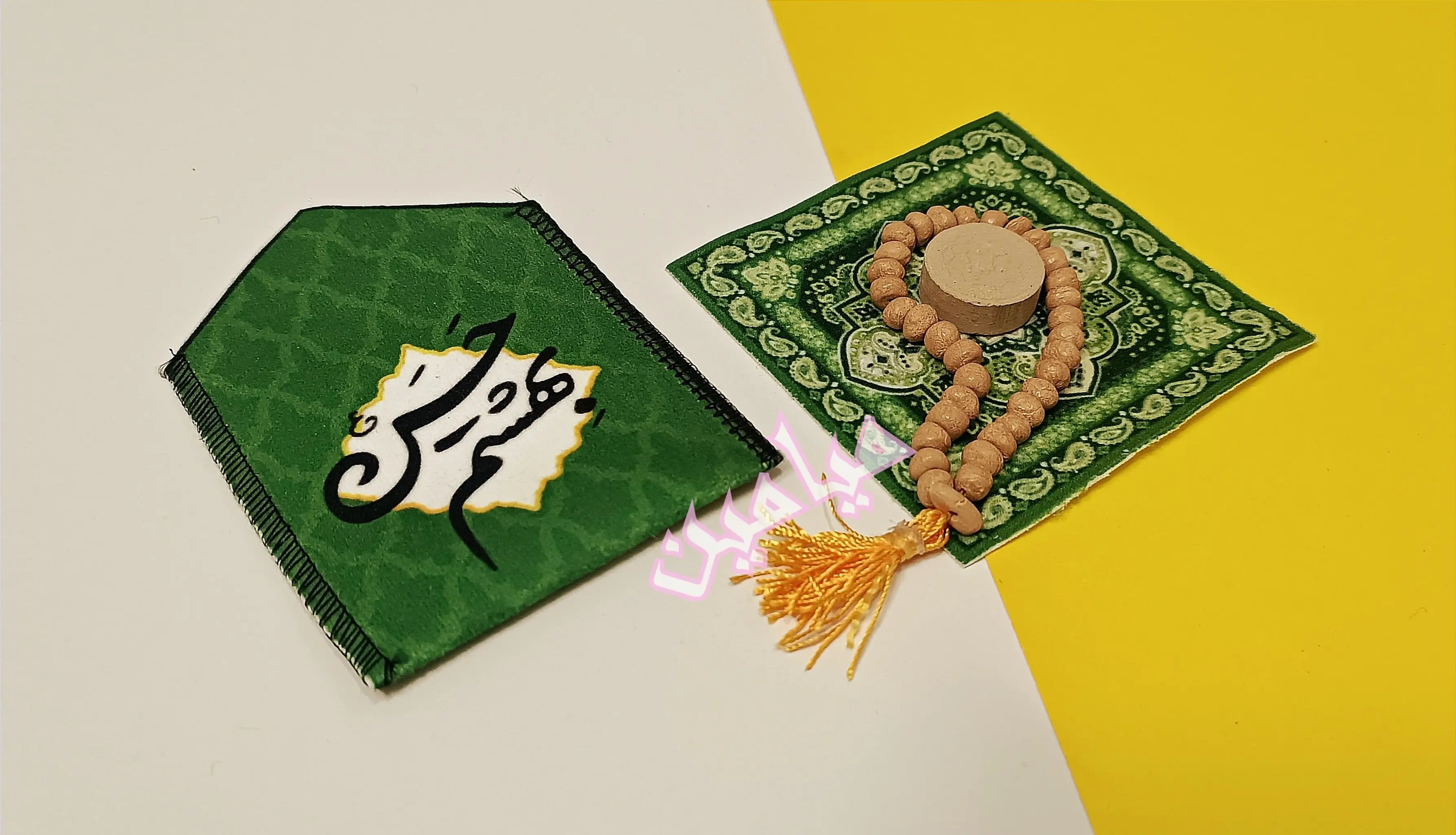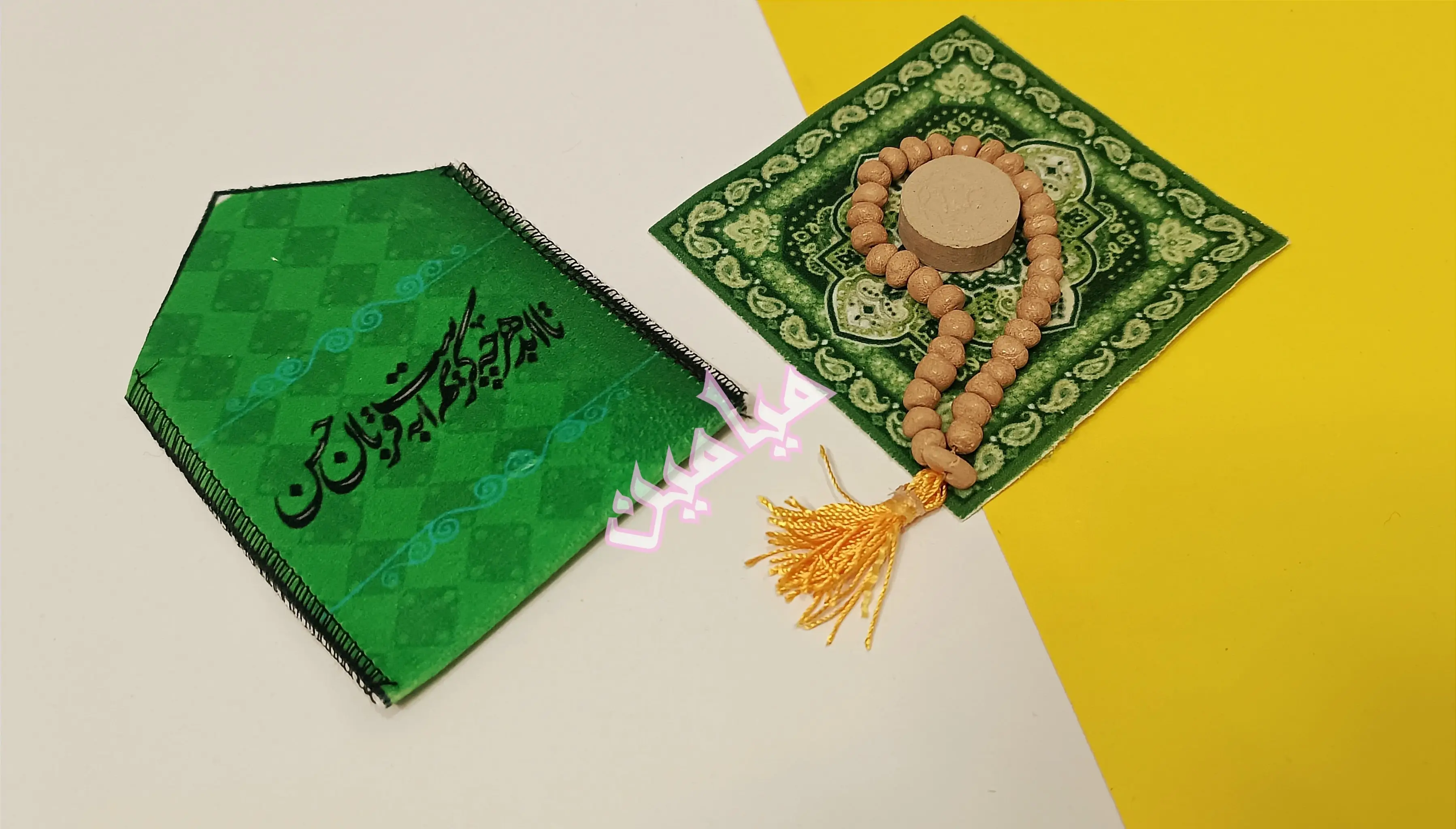 جانماز جیبی مخمل امام حسنی 💚 | تنوع طرح های زیبا | دو تکه و بدون دکمه | تک و عمده