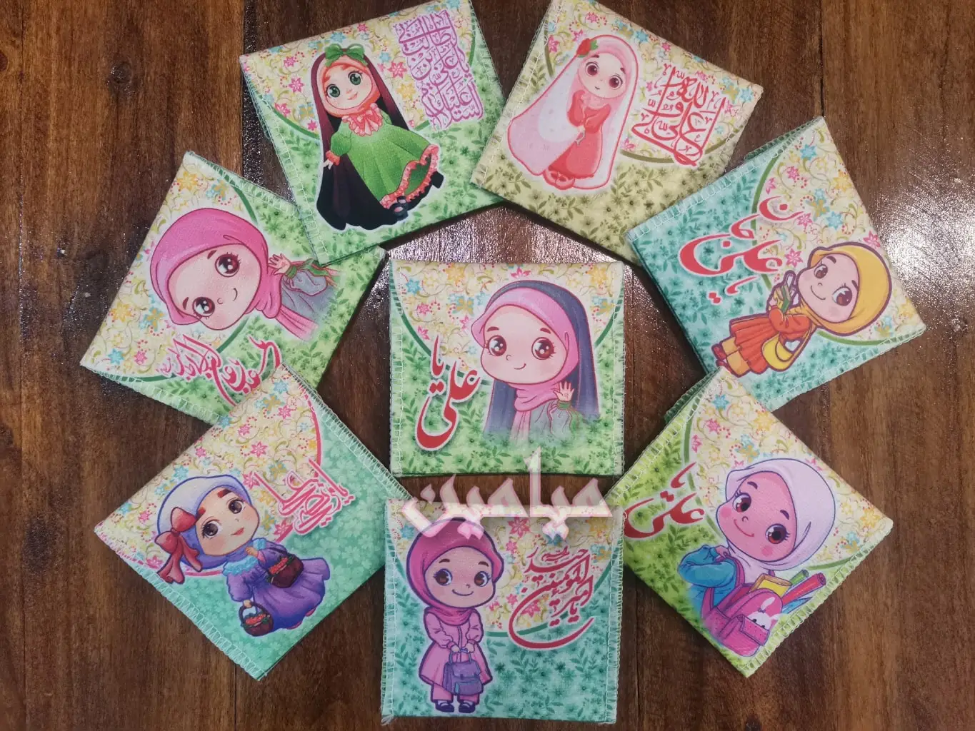 جانماز مخمل دخترانه طرح نام مبارک امام علی (ع) 😍 | جیبی | دو تکه | تنوع طرح های فانتزی جذاب | تک و عمده