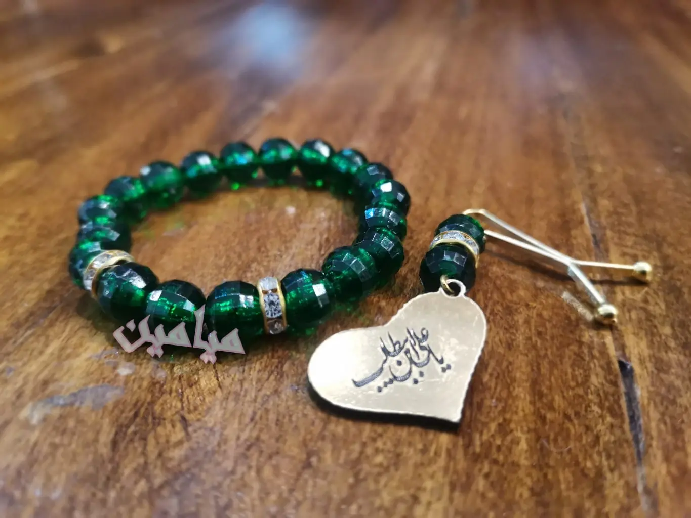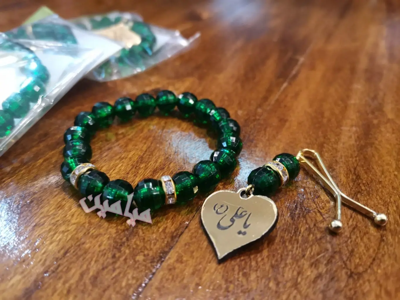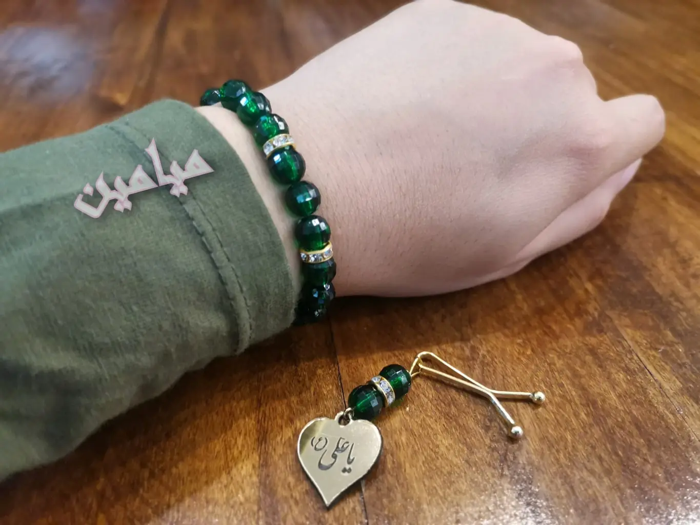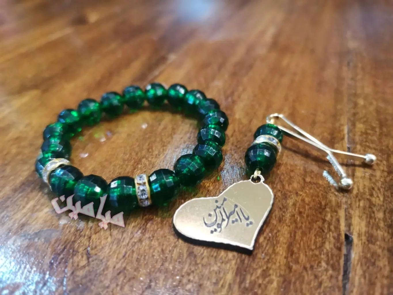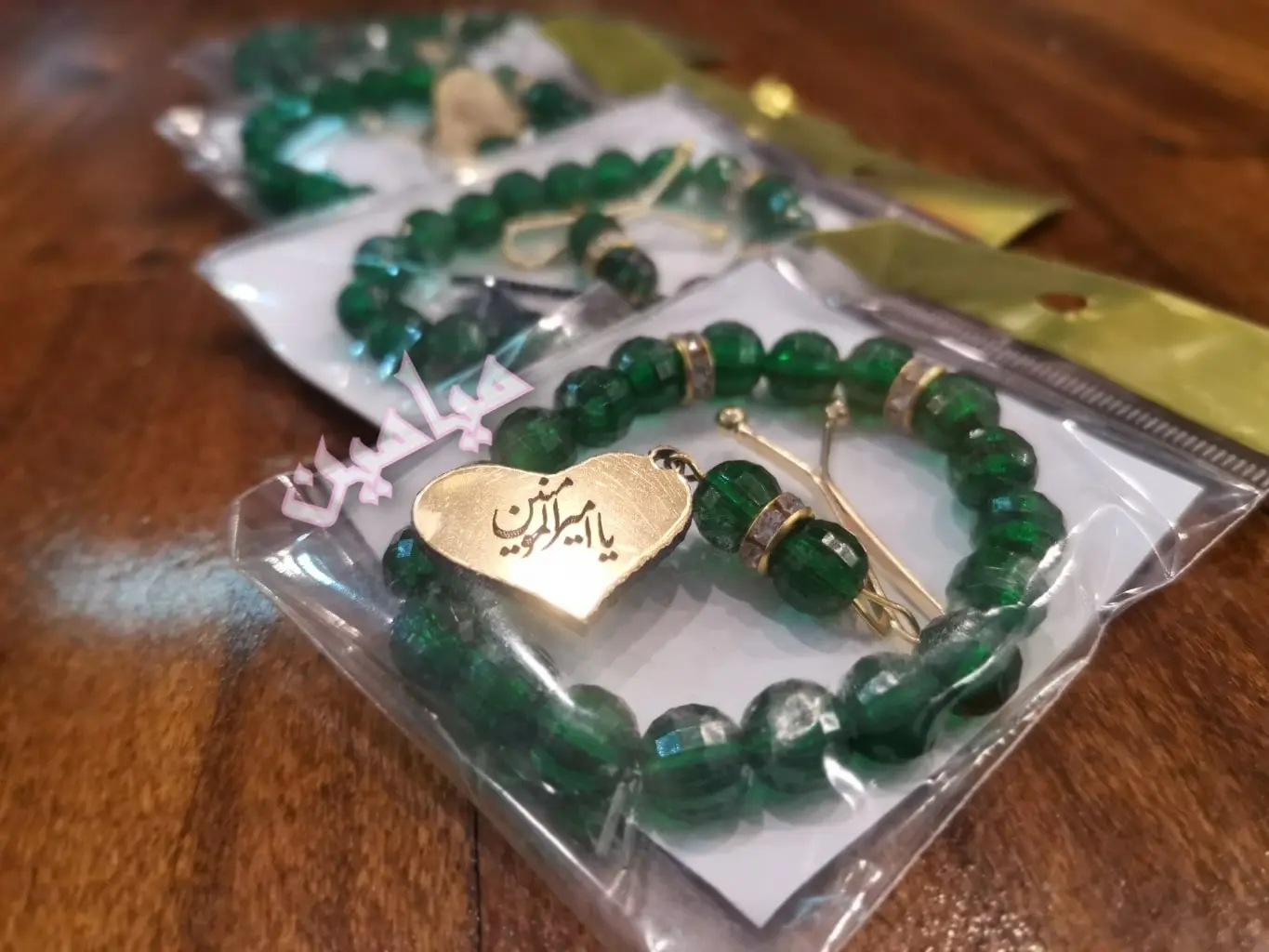 ست دستبند و گیره روسری سبز غدیری 💚 | گیره دارای پلاک طلایی نام امیرالمومنین | تک و عمده