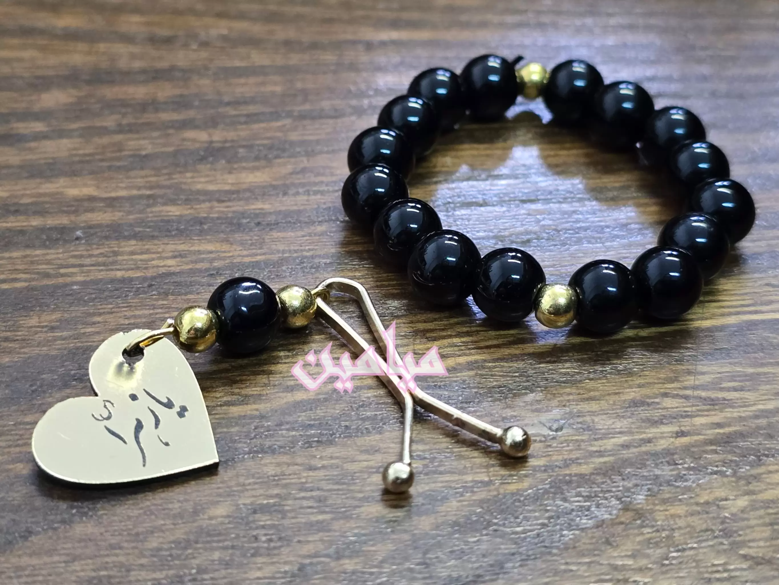 ست دستبند و گیره روسری مشکی فاطمیه 🖤 | با پلاک طلایی نام حضرت زهرا (س) | تک و عمده