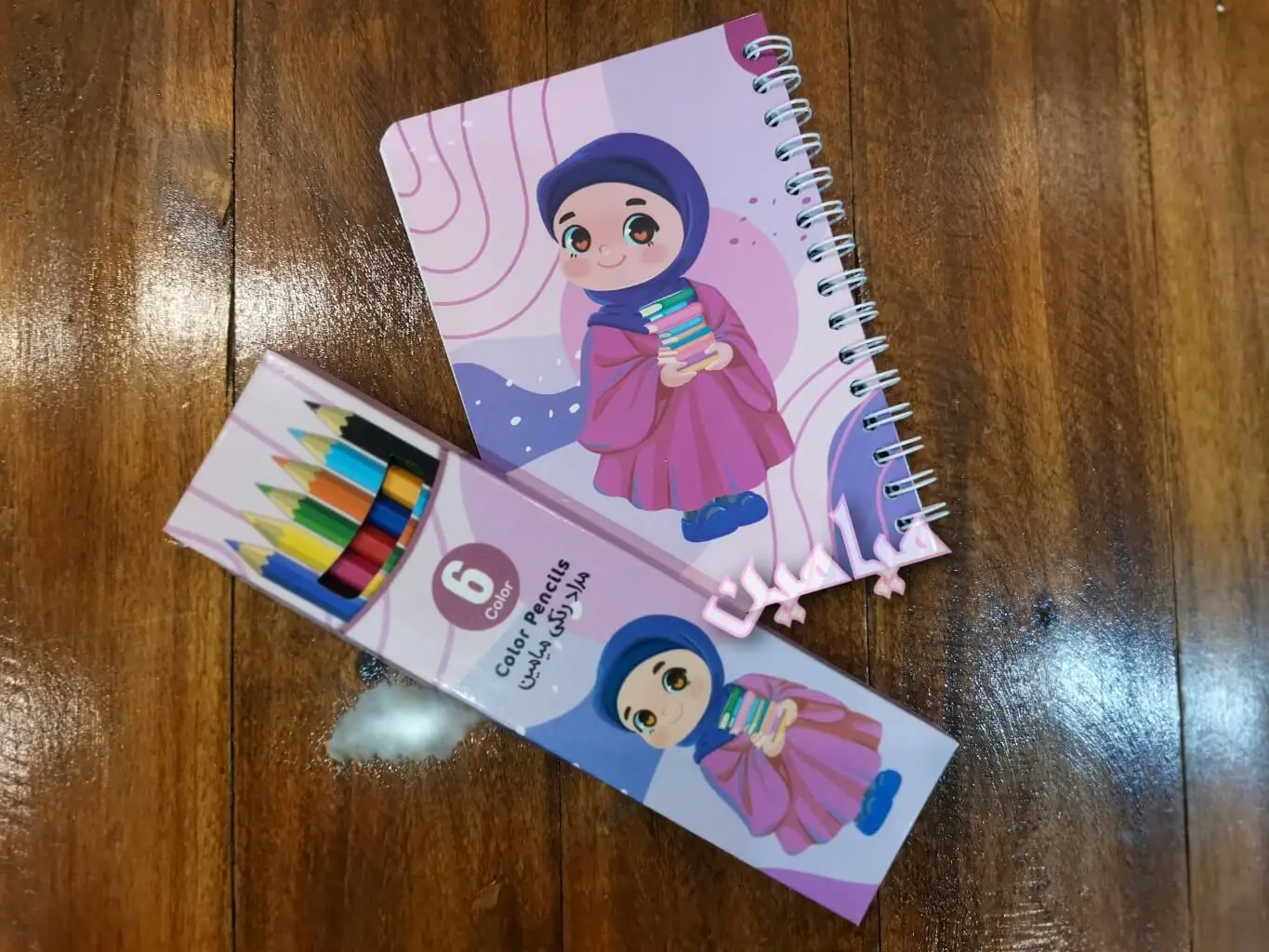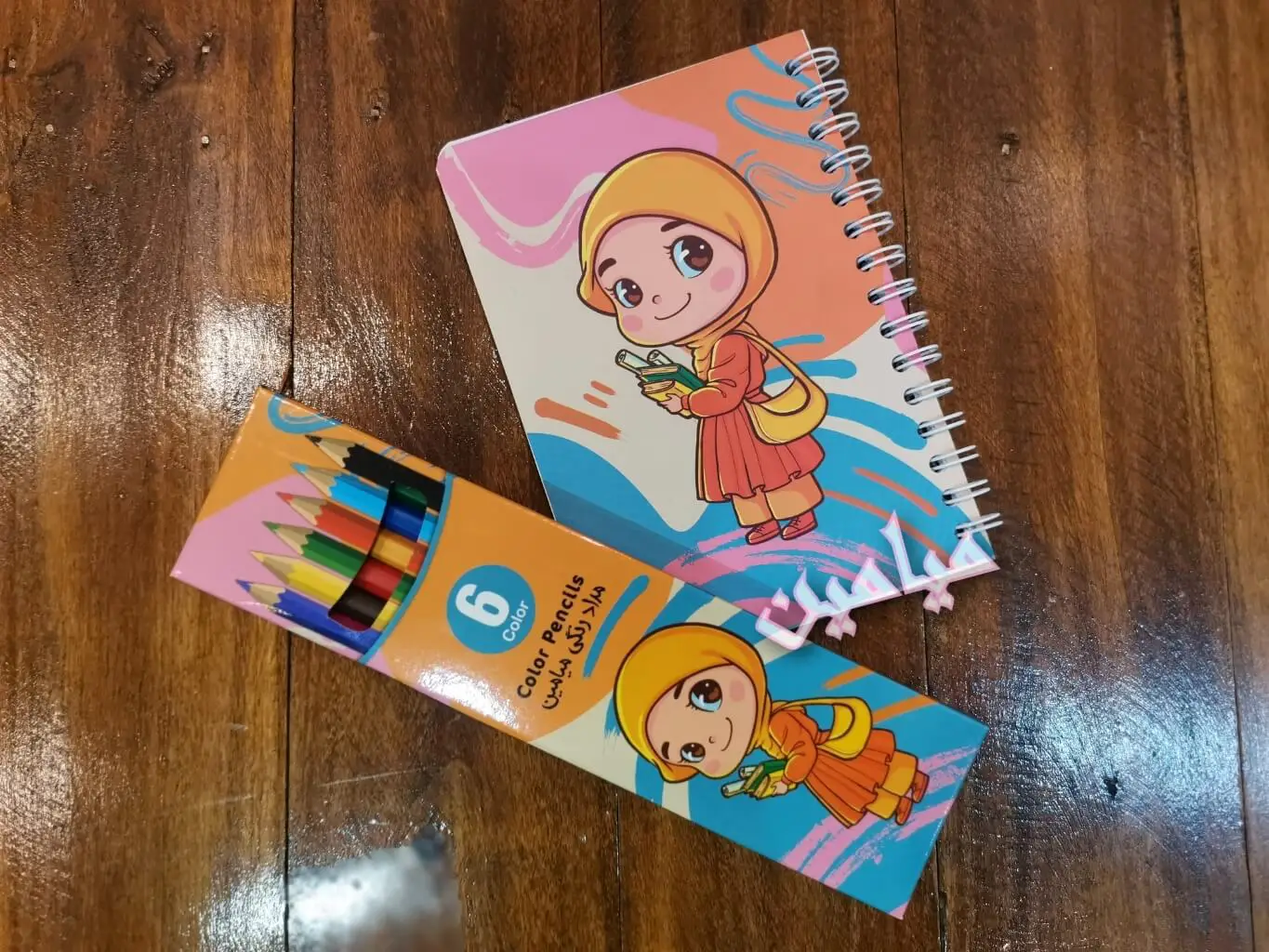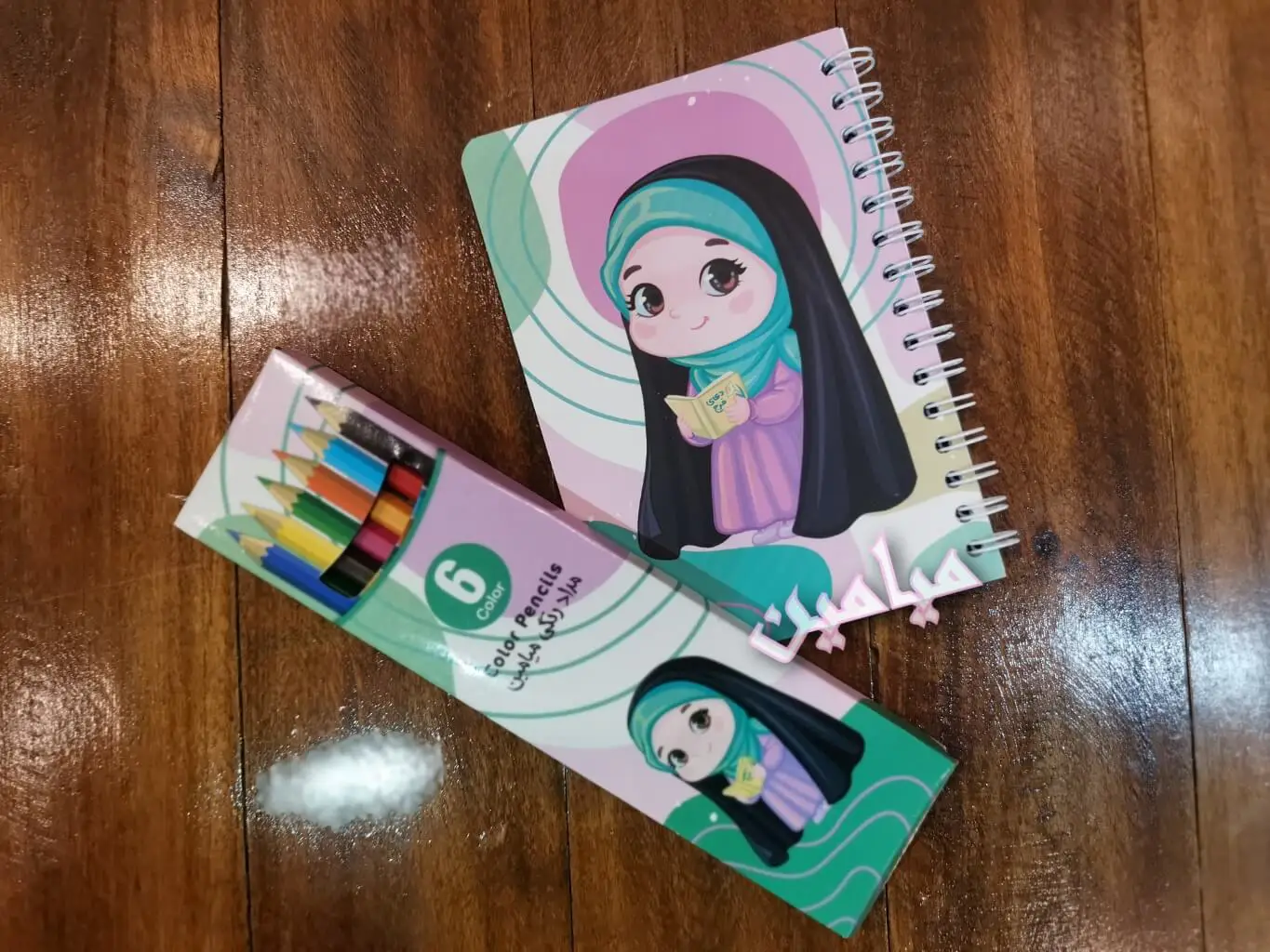 ست دفترچه و مداد رنگی میامین 😍 | تنوع طرح های جذاب دخترانه و پسرانه مذهبی | تک و عمده
