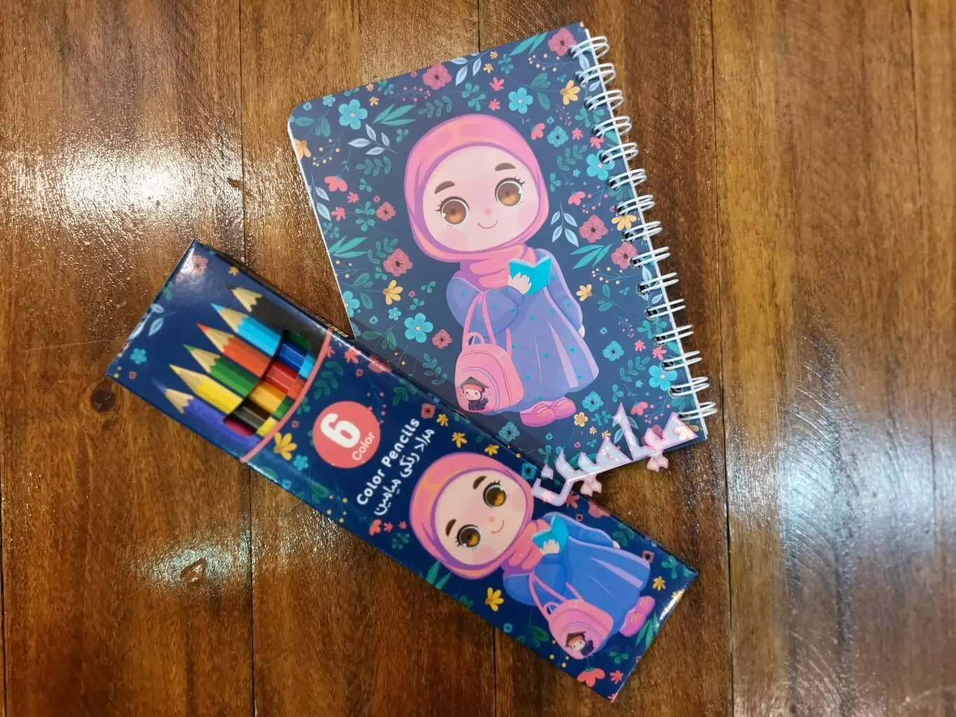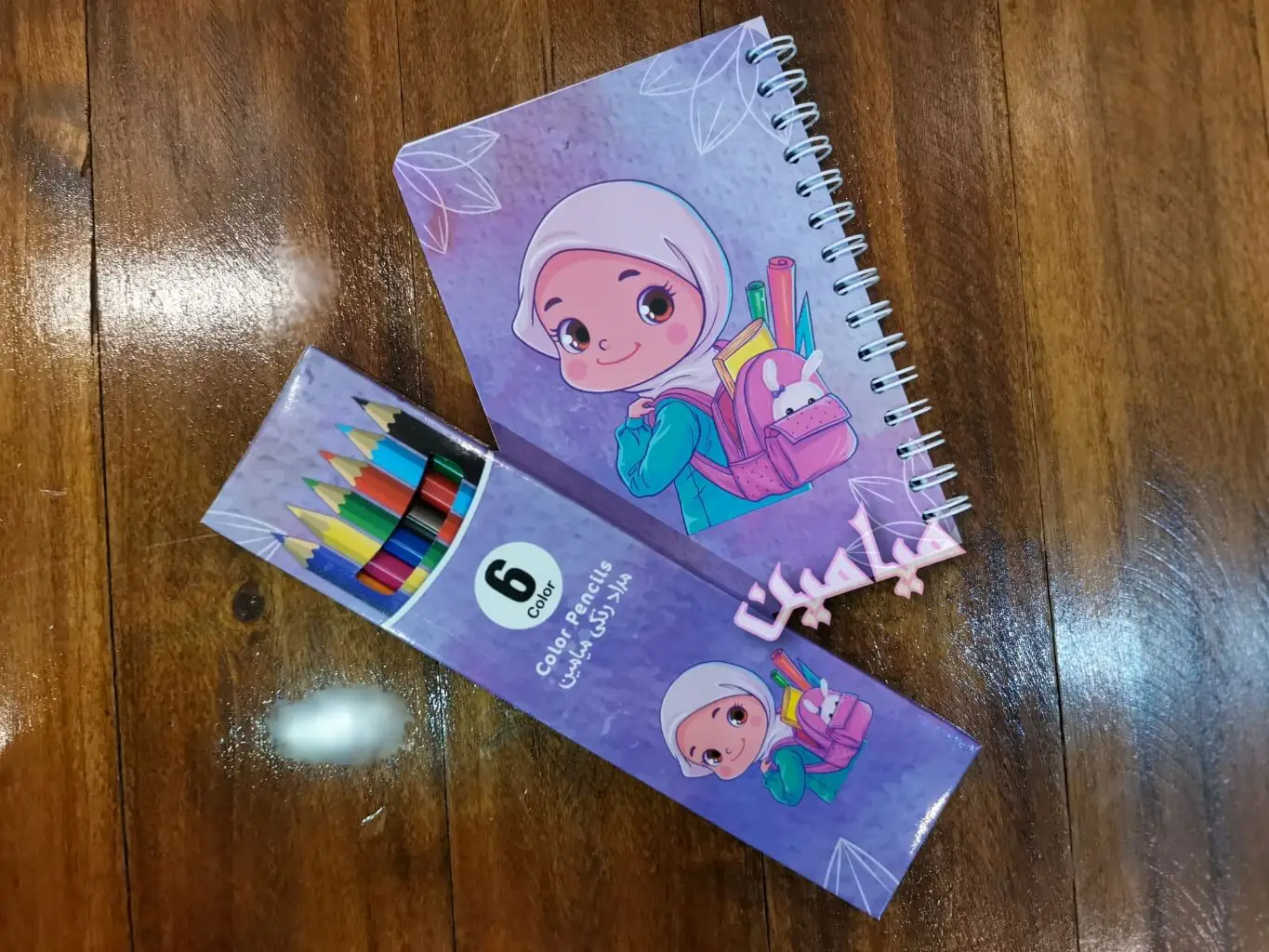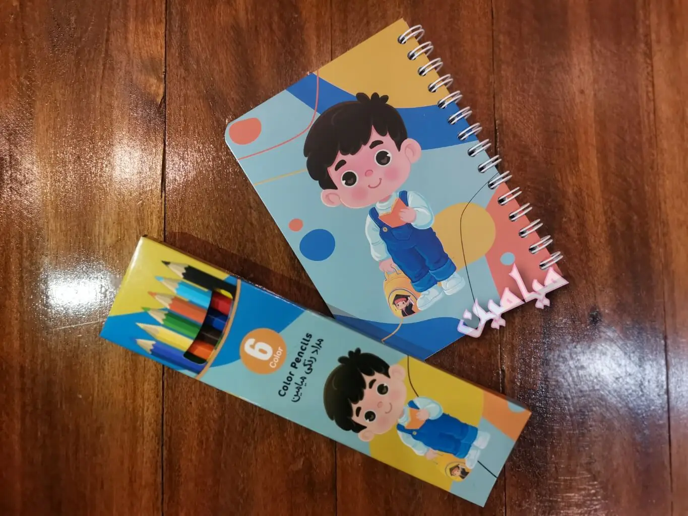 ست دفترچه و مداد رنگی میامین 😍 | تنوع طرح های جذاب دخترانه و پسرانه مذهبی | تک و عمده