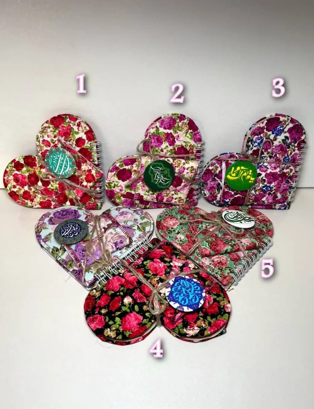 تنوع چند طرح مختلف زیبا داره .شامل دفترچه، جانماز و پیکسل هست. دفترچه ۴۵ برگی و دارای برگه های کاهی و بدون خطه و ابعاد حدودی جانمازهای جیبی ۸ در ۸ هست.