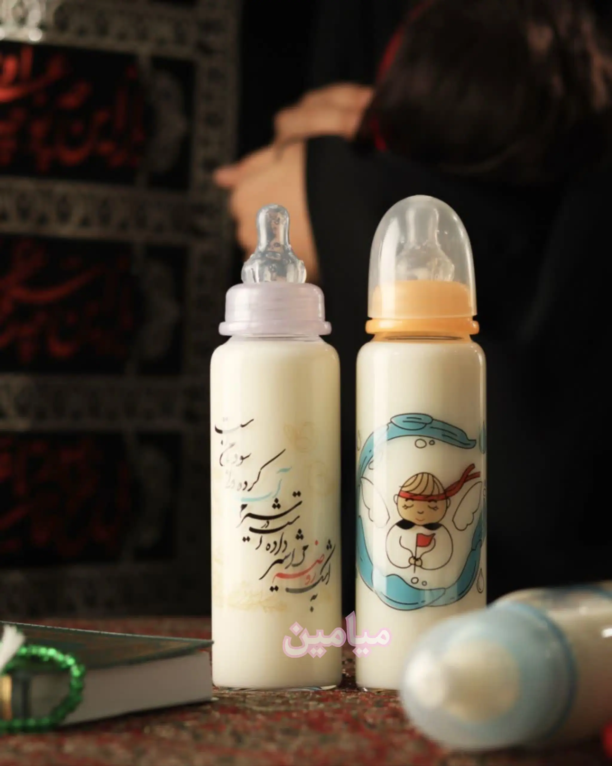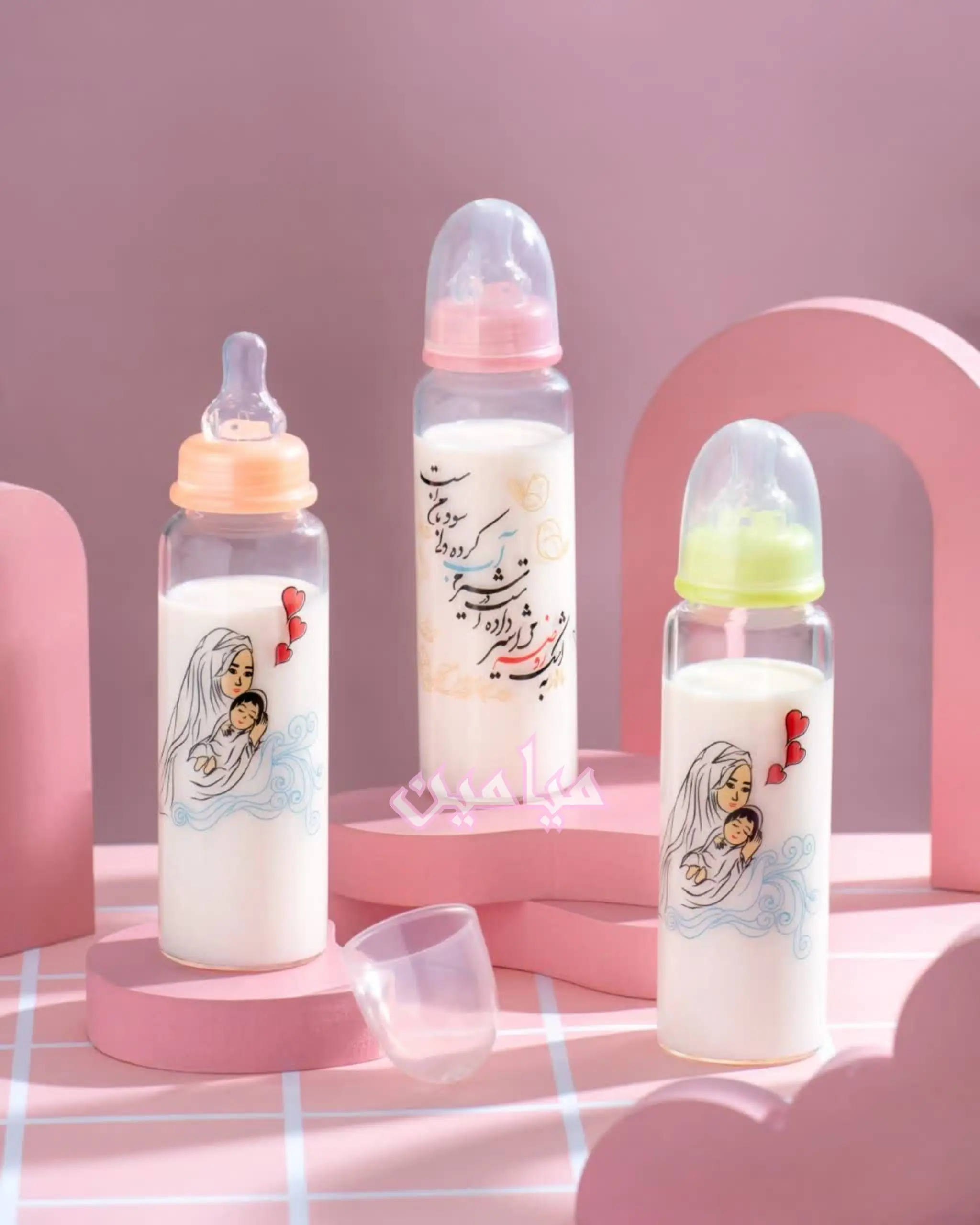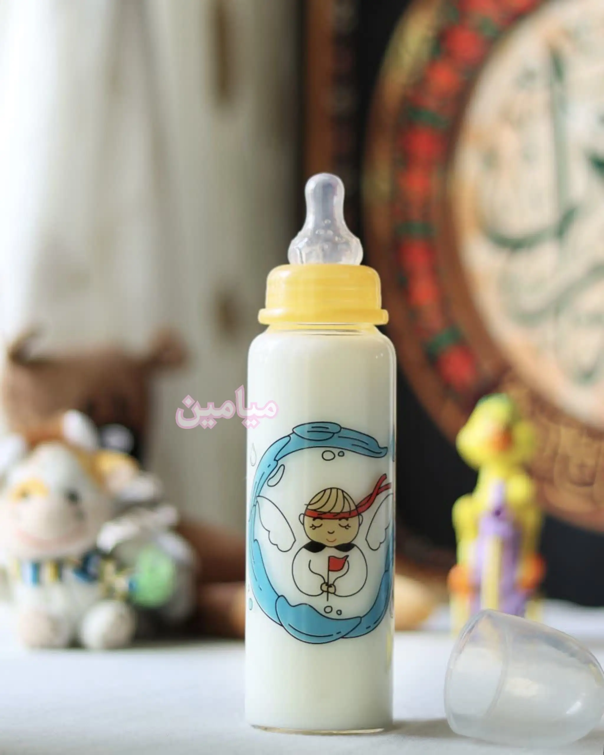 شیشه شیر کودک و نوزاد طرح محرم 👶| دو طرف چاپ | پیرکس | ۲۴۰ سی سی | برند nuby | تک و عمده
