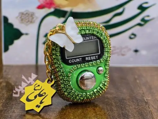 صلوات شمار نگینی سبز 💚 | با پلاک طلایی نام مبارک امام علی (ع) | دارای بسته بندی سلفونی و کارت تبریک عید غدیر | تک و عمده