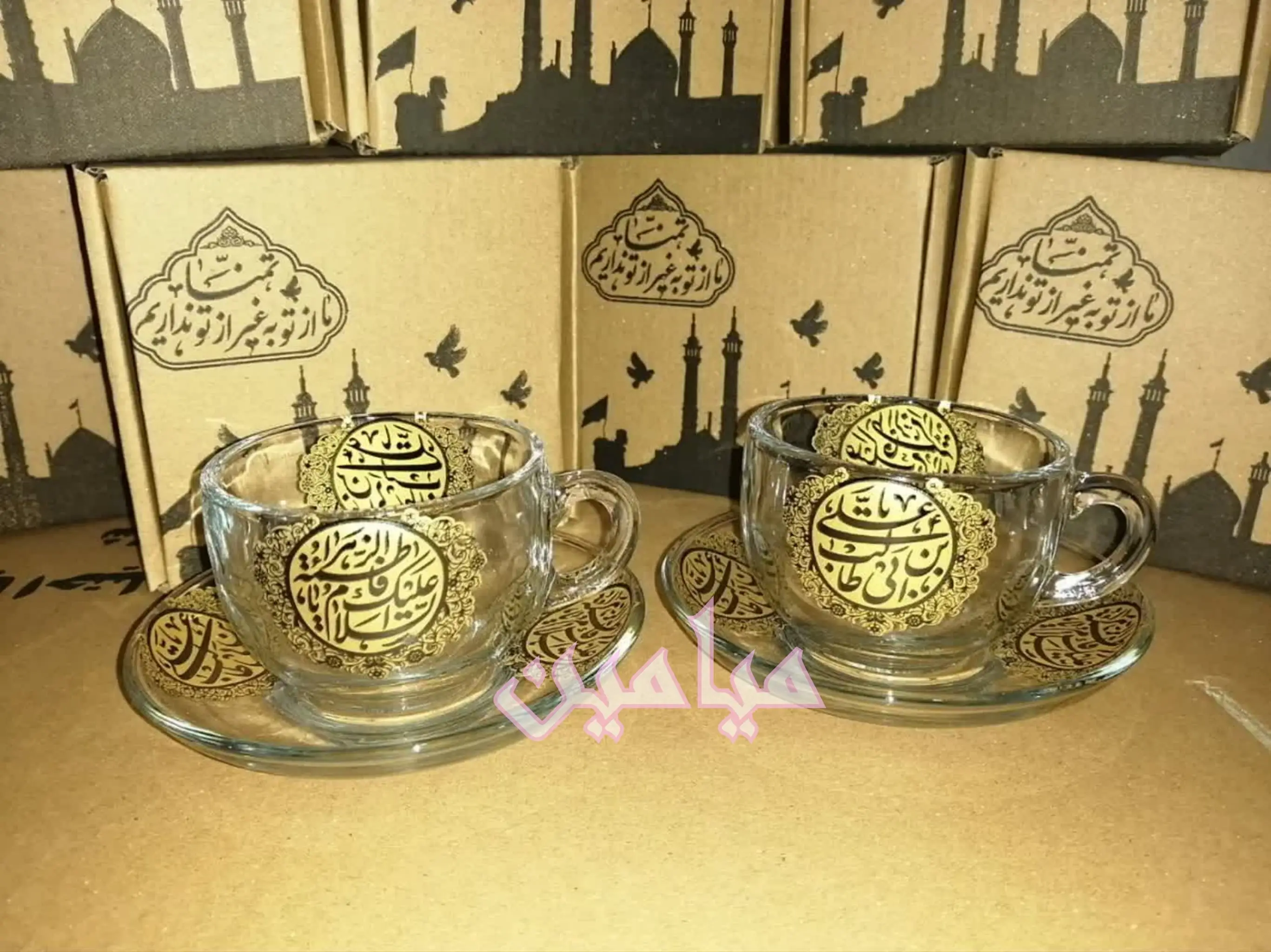 فنجان نعلبکی طرح نام مبارک حضرت زهرا (س) و امام علی (ع) 💚 | چاپ ثابت و کوره ای | تک جعبه | تک و عمده