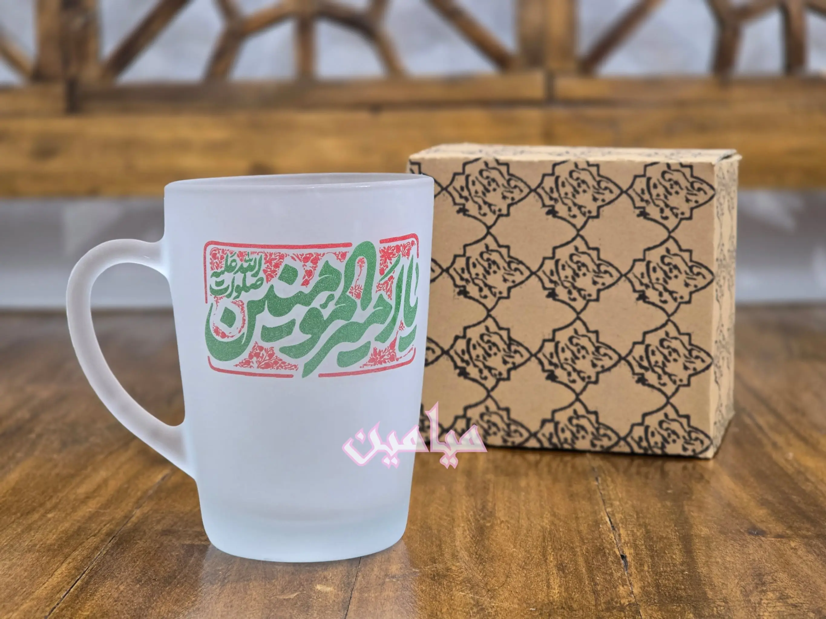 ماگ/لیوان یخی طرح نام مبارک امام علی (ع) 💚 | دارای جعبه | تنوع طرح های زیبا | تک و عمده