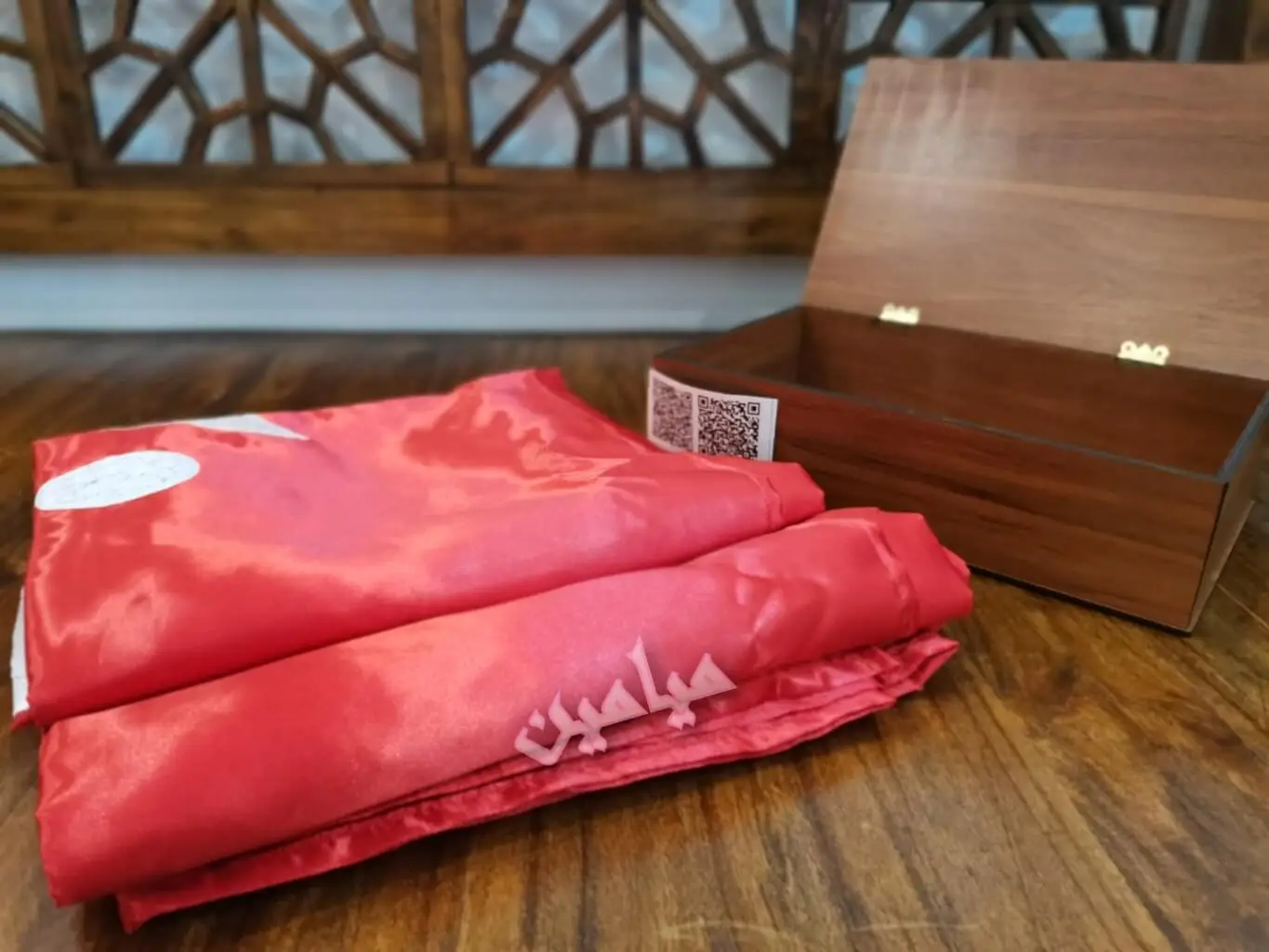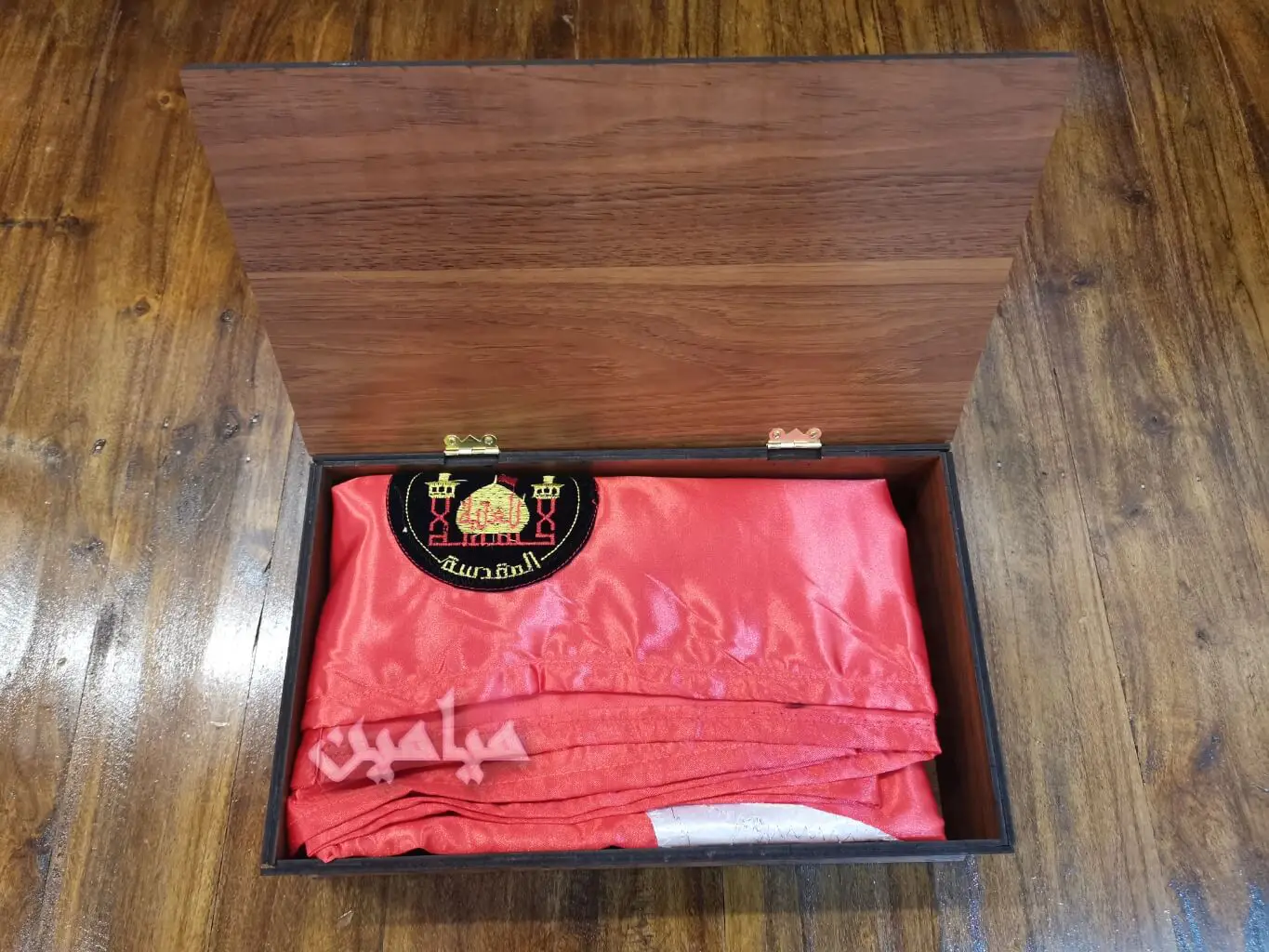 پرچم متبرک حرم امام حسین (ع) 🏴 | دارای باکس چوبی زیبا | رنگ قرمز