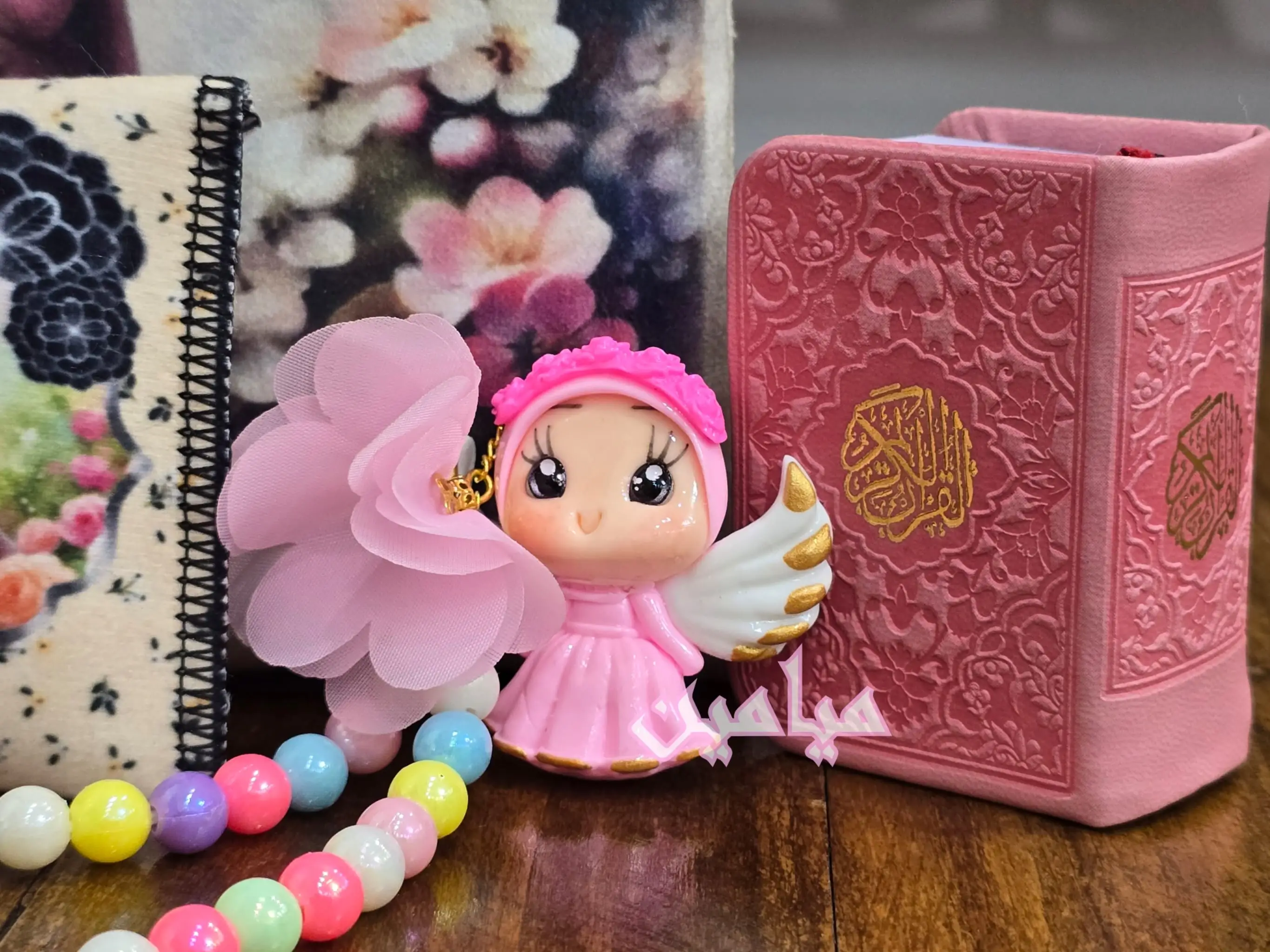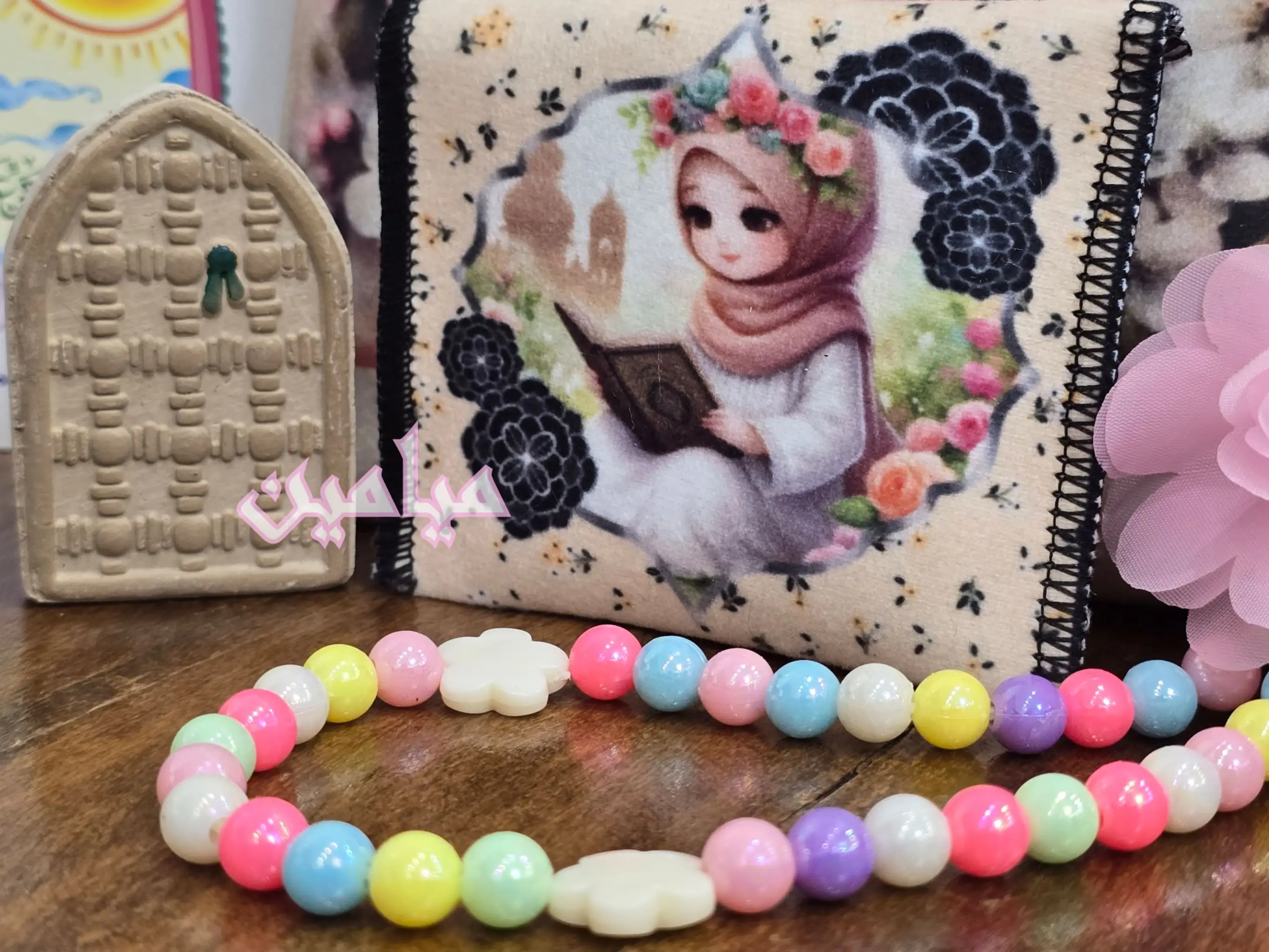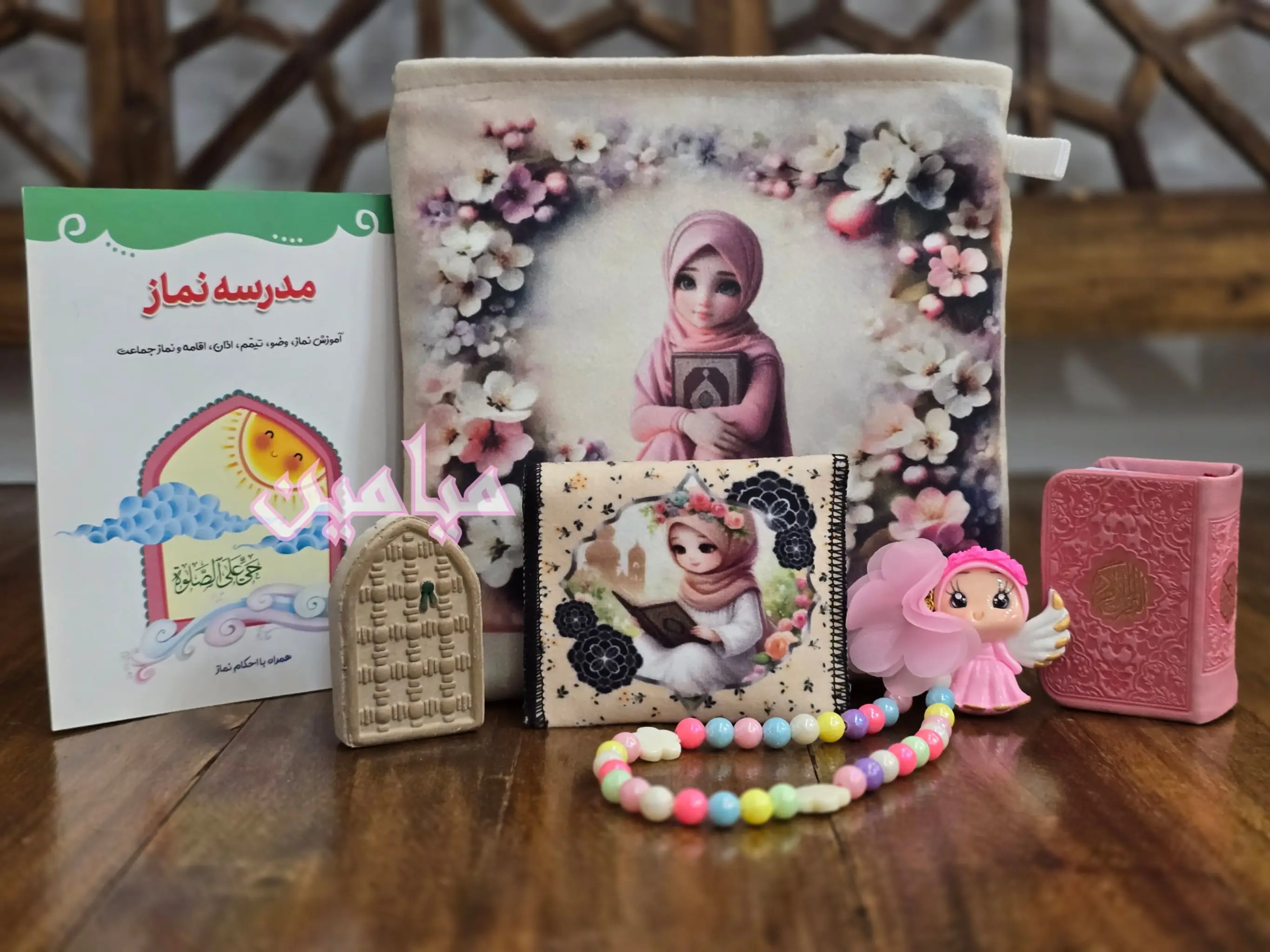 پک فرهنگی دخترانه میامین ویژه ماه مبارک رمضان ❤️ | کیف ملزومات ، کتابچه مدرسه نماز ، مهر تربت دخیل ، تسبیح فرشته ۳۳ تایی ، جانماز جیبی مخمل و قرآن نیم لقمه رنگی | تک و عمده