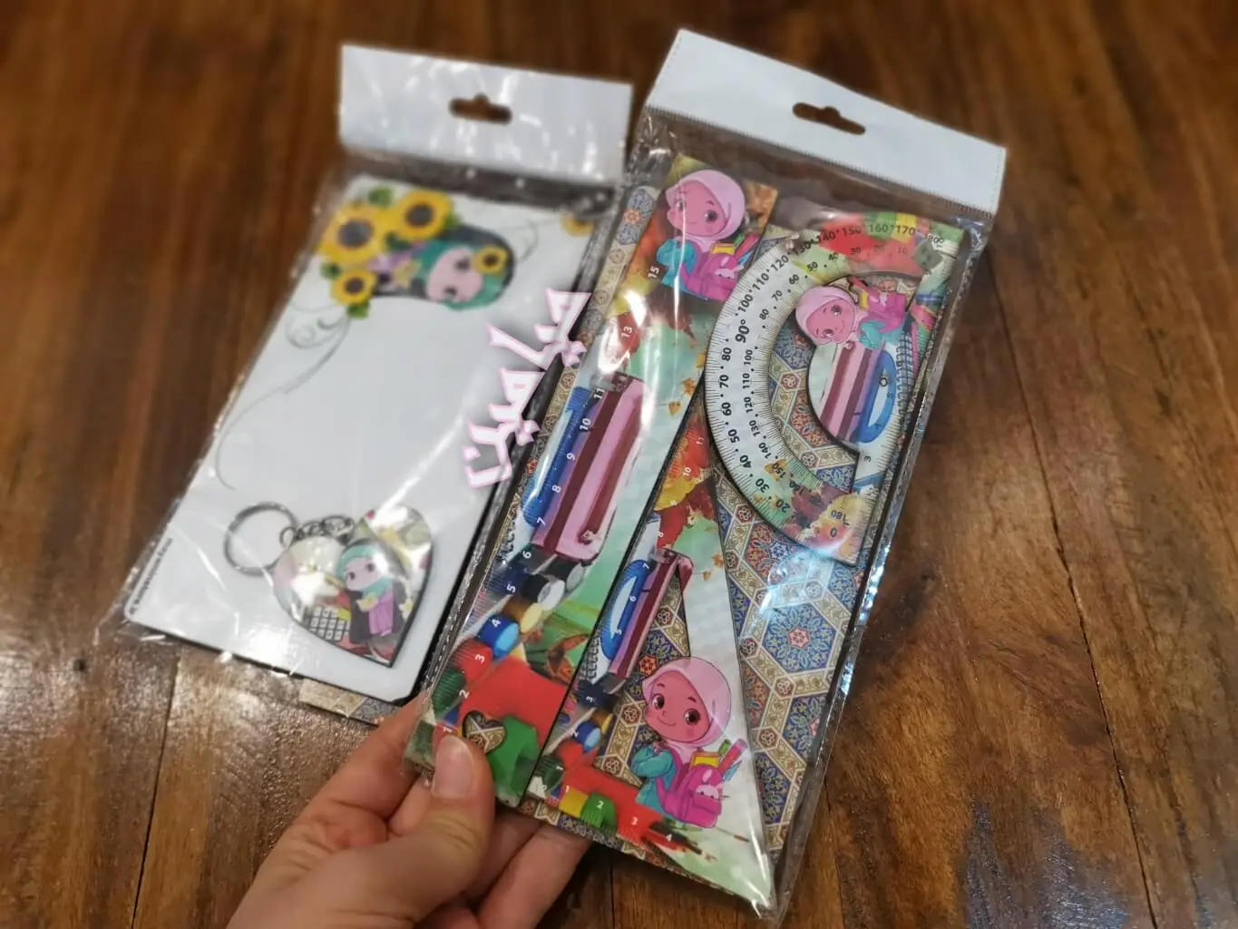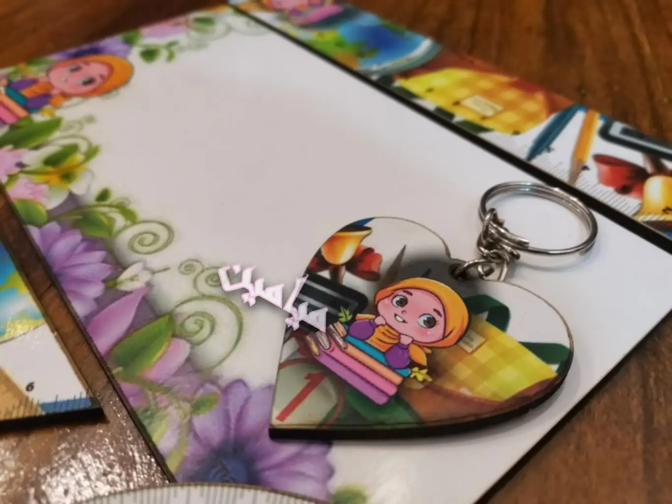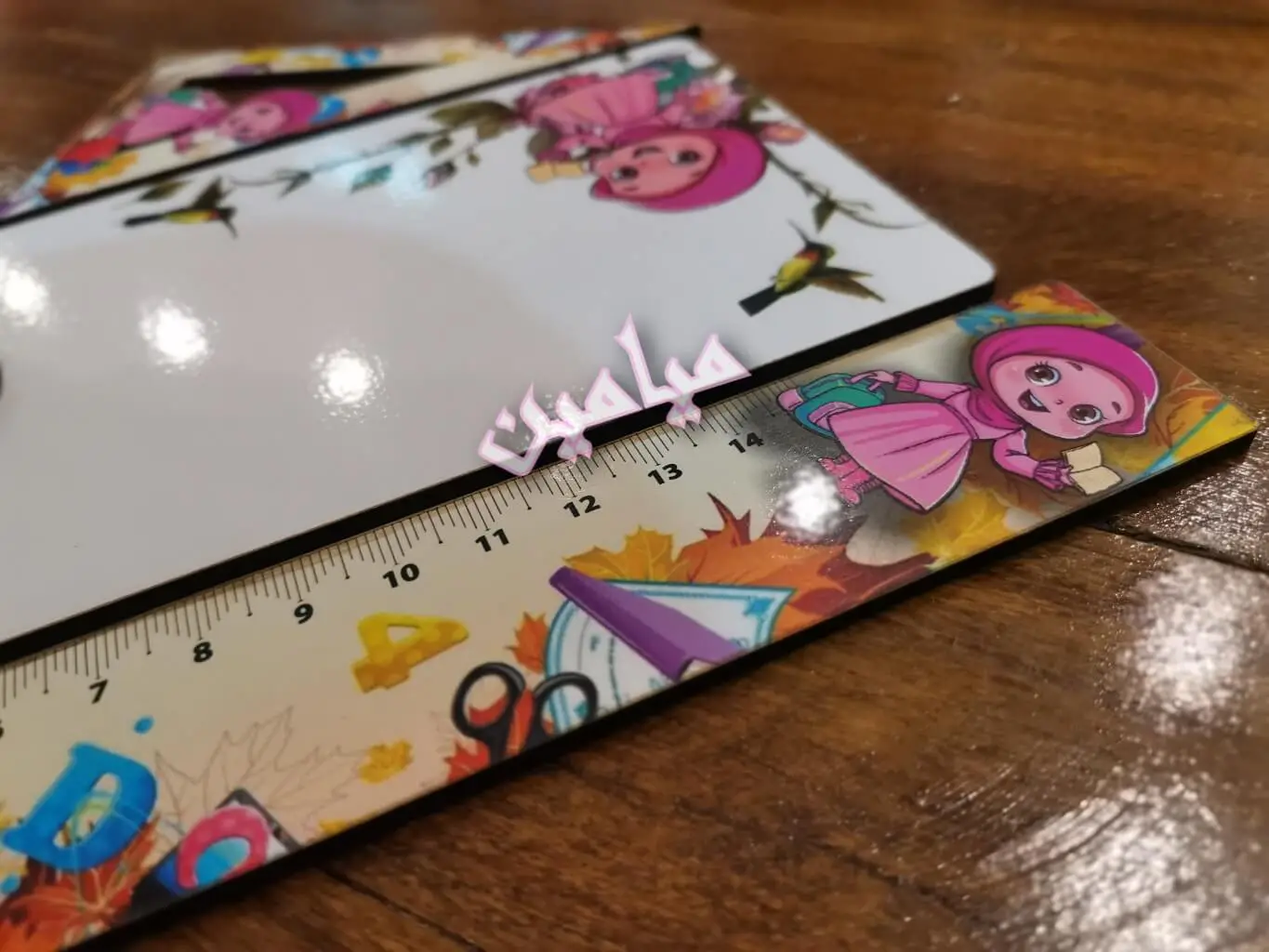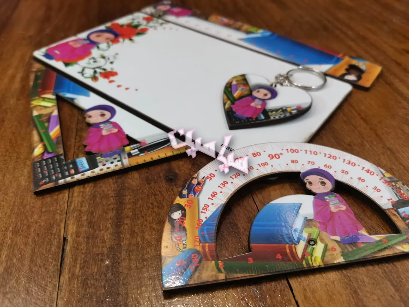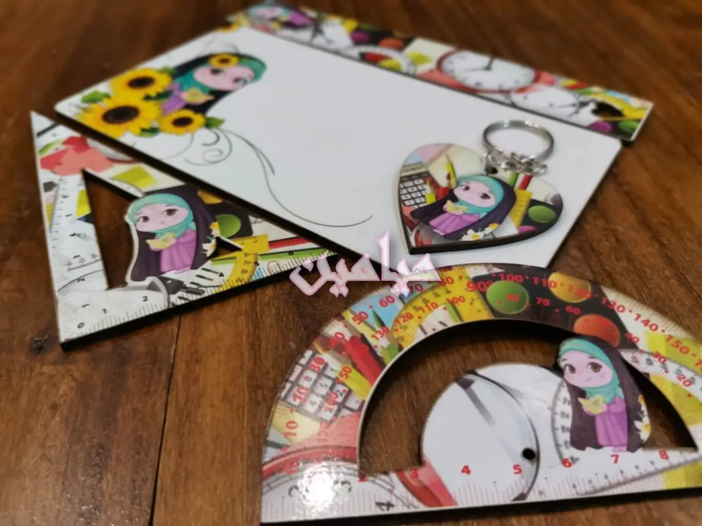پک نوشت افزاری فانتزی دخترانه 😍 | چوبی | ۵ قلم کاربردی | خط کش، گونیا ، نقاله ، تخته وایت برد و جاسوئیچی | تنوع طرح های جذاب دخترانه | تک و عمده