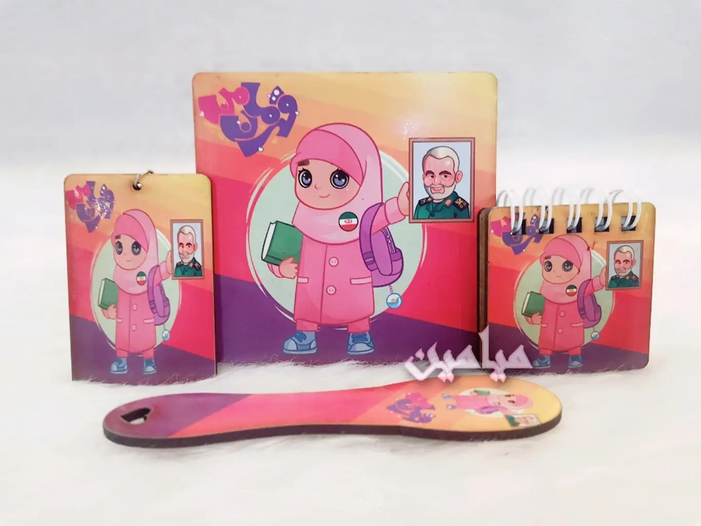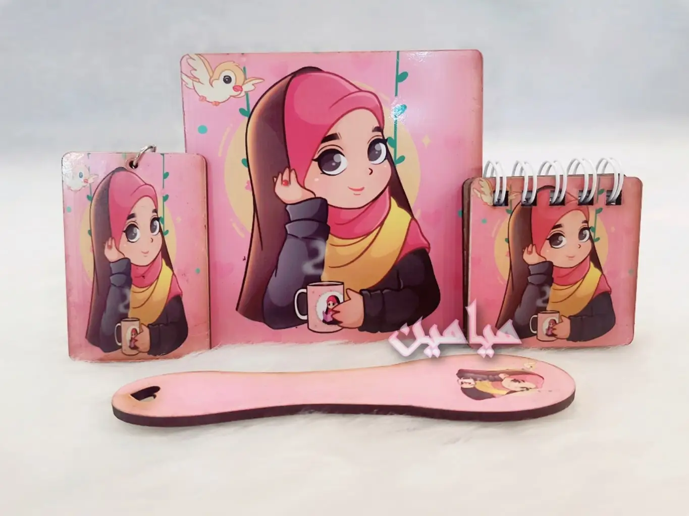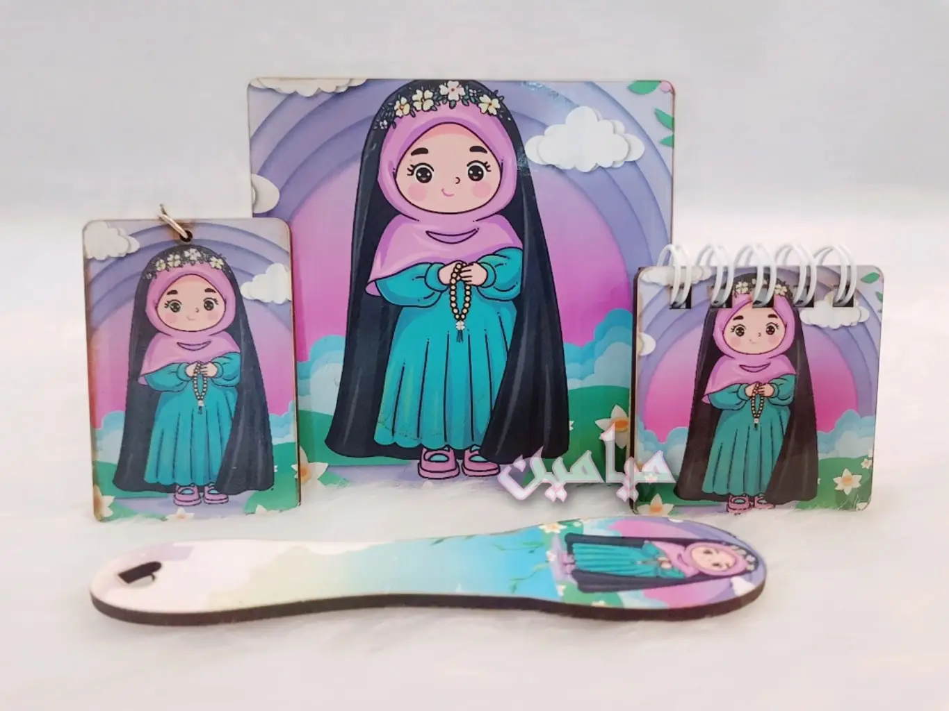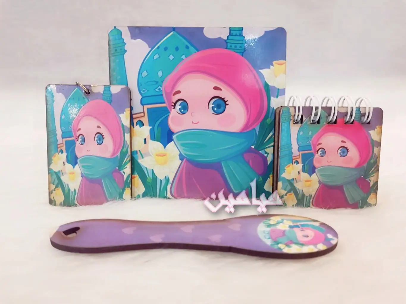 پک هدیه فرهنگی دخترانه حجاب 😍| ۴ قلم | زیرلیوانی ، نشانگر ، دفترچه و جاسوئیچی | تک و عمده