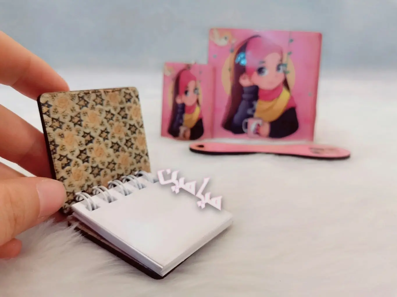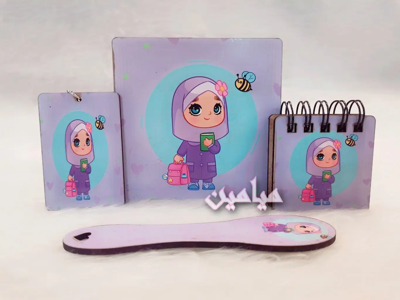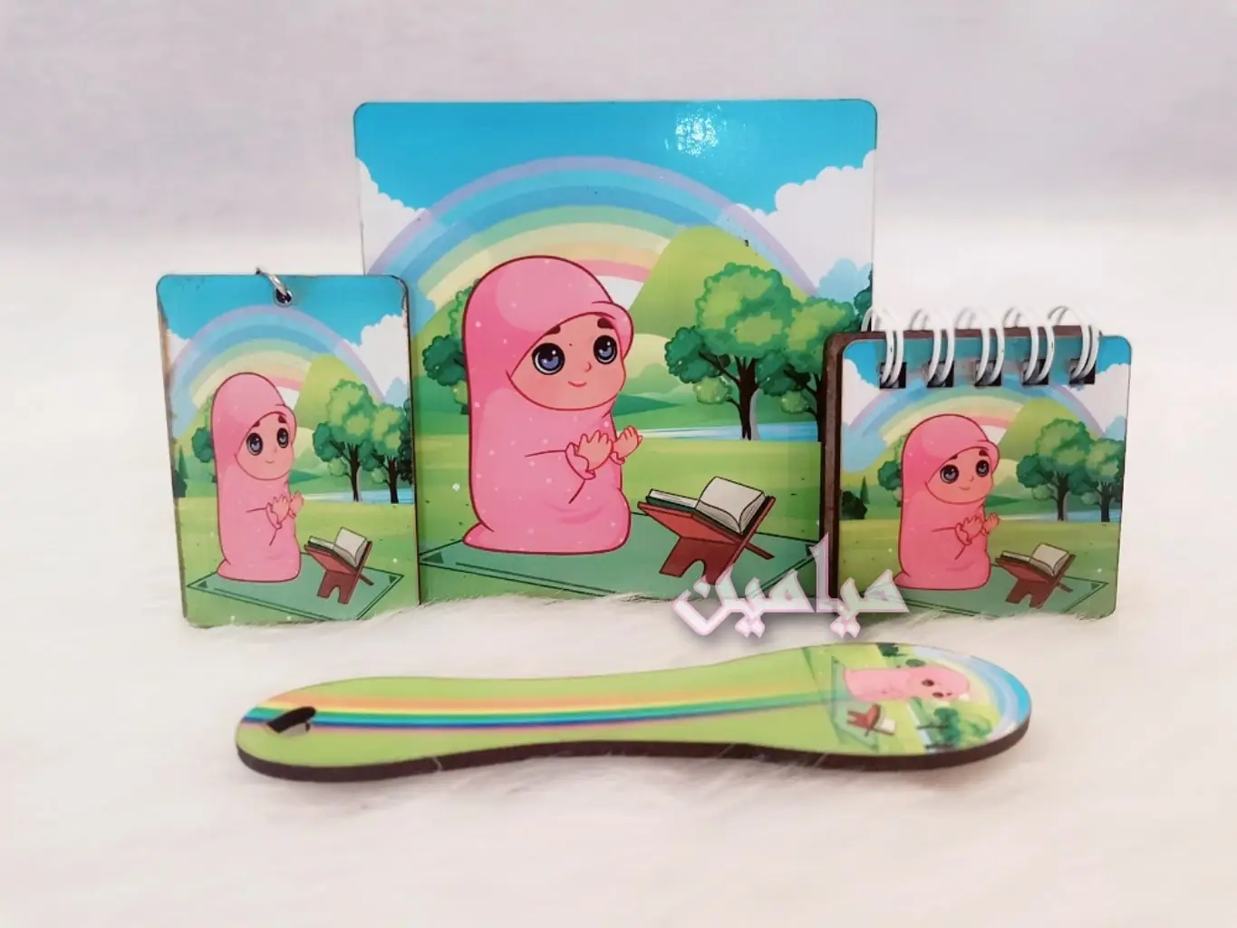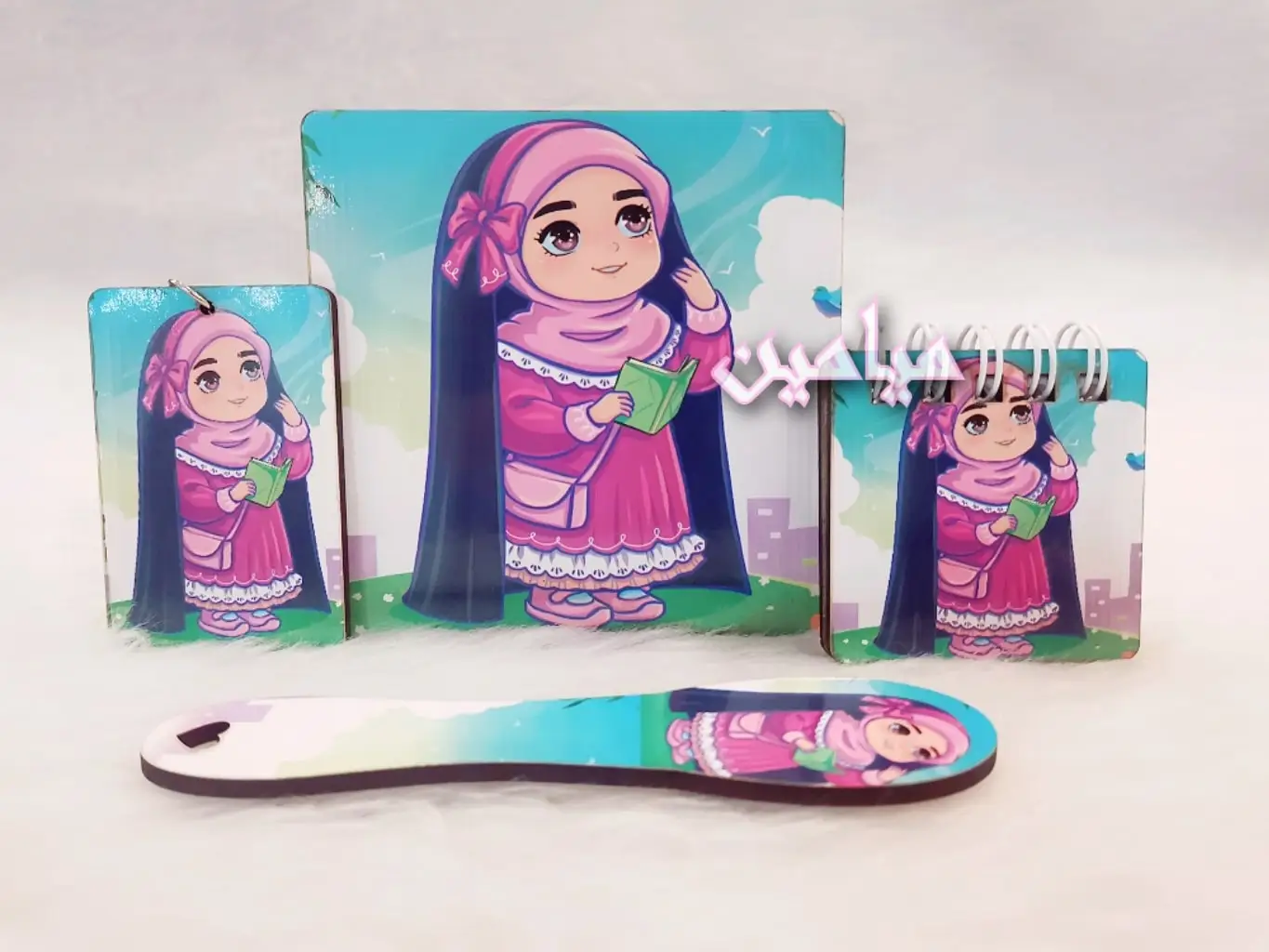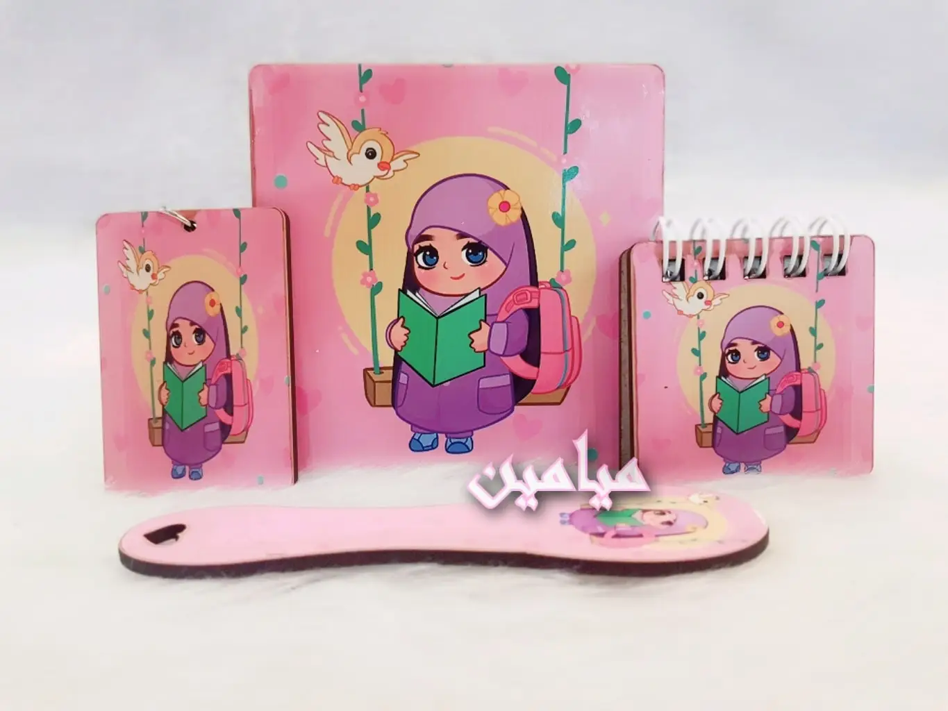 پک هدیه فرهنگی دخترانه حجاب 😍| ۴ قلم | زیرلیوانی ، نشانگر ، دفترچه و جاسوئیچی | تک و عمده
