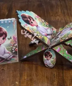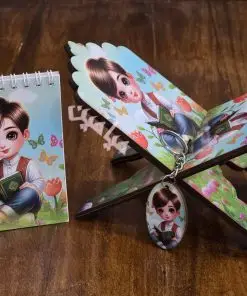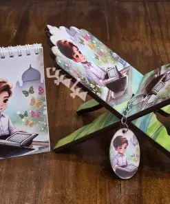 پک ۴ قلم قرآنی کودکانه ❤️| دخترانه و پسرانه | رحل ، دفترچه ، جاسوئیچی و نشانگر | چوبی | تنوع طرح های جذاب | تک و عمده