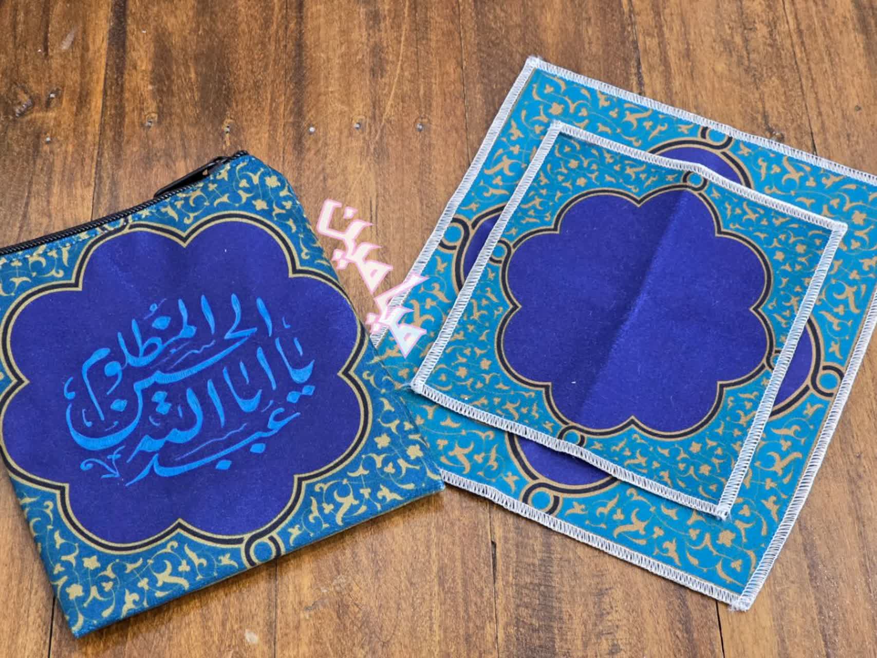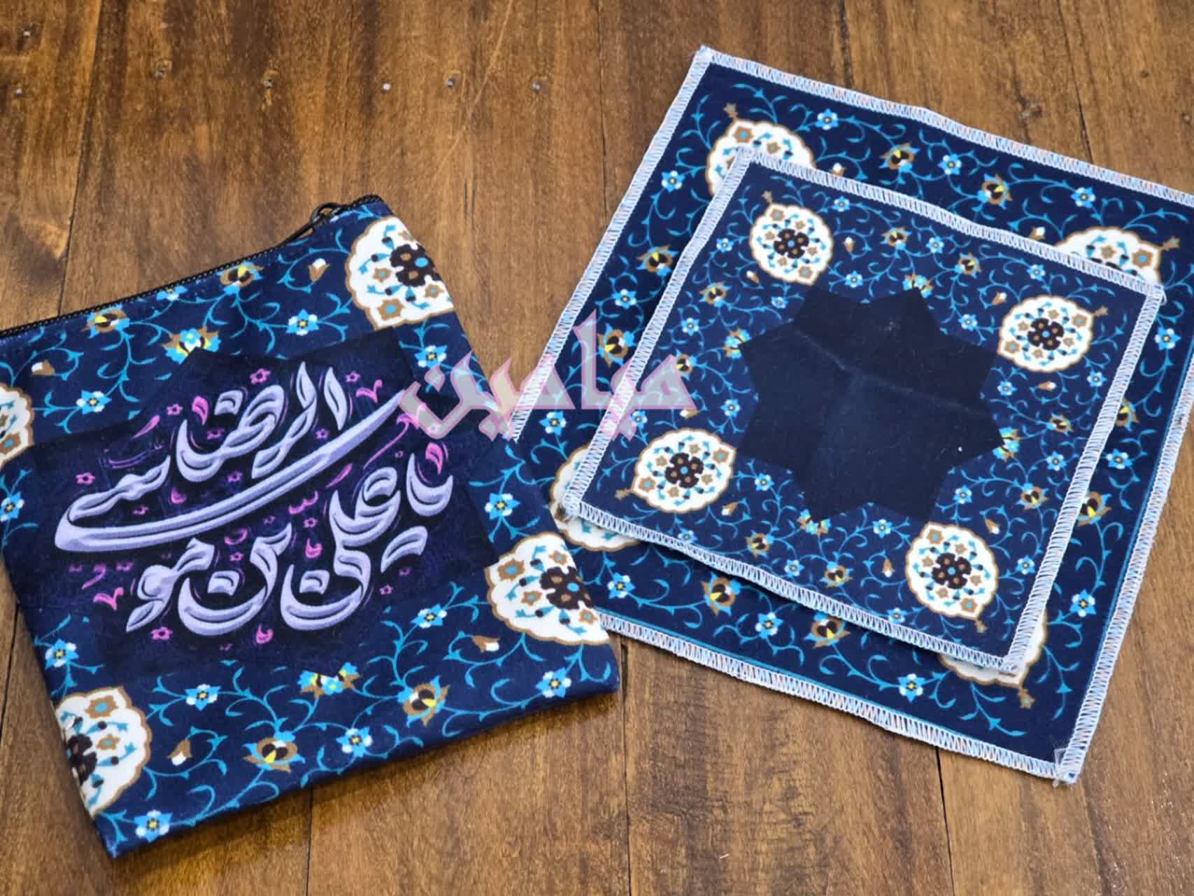 کیف ملزومات سه تکه طرح نام ائمه اطهار ❤️| جنس مخمل | شامل سجاده جانماز و کیف زیپ دار| تنوع طرح های زیبا | تک و عمده