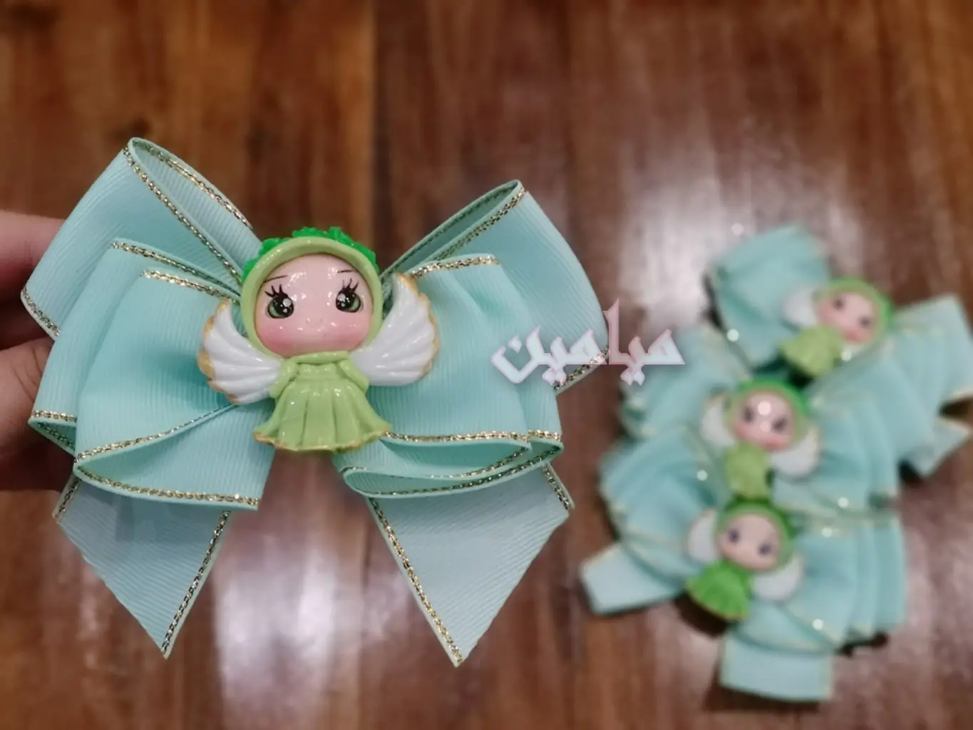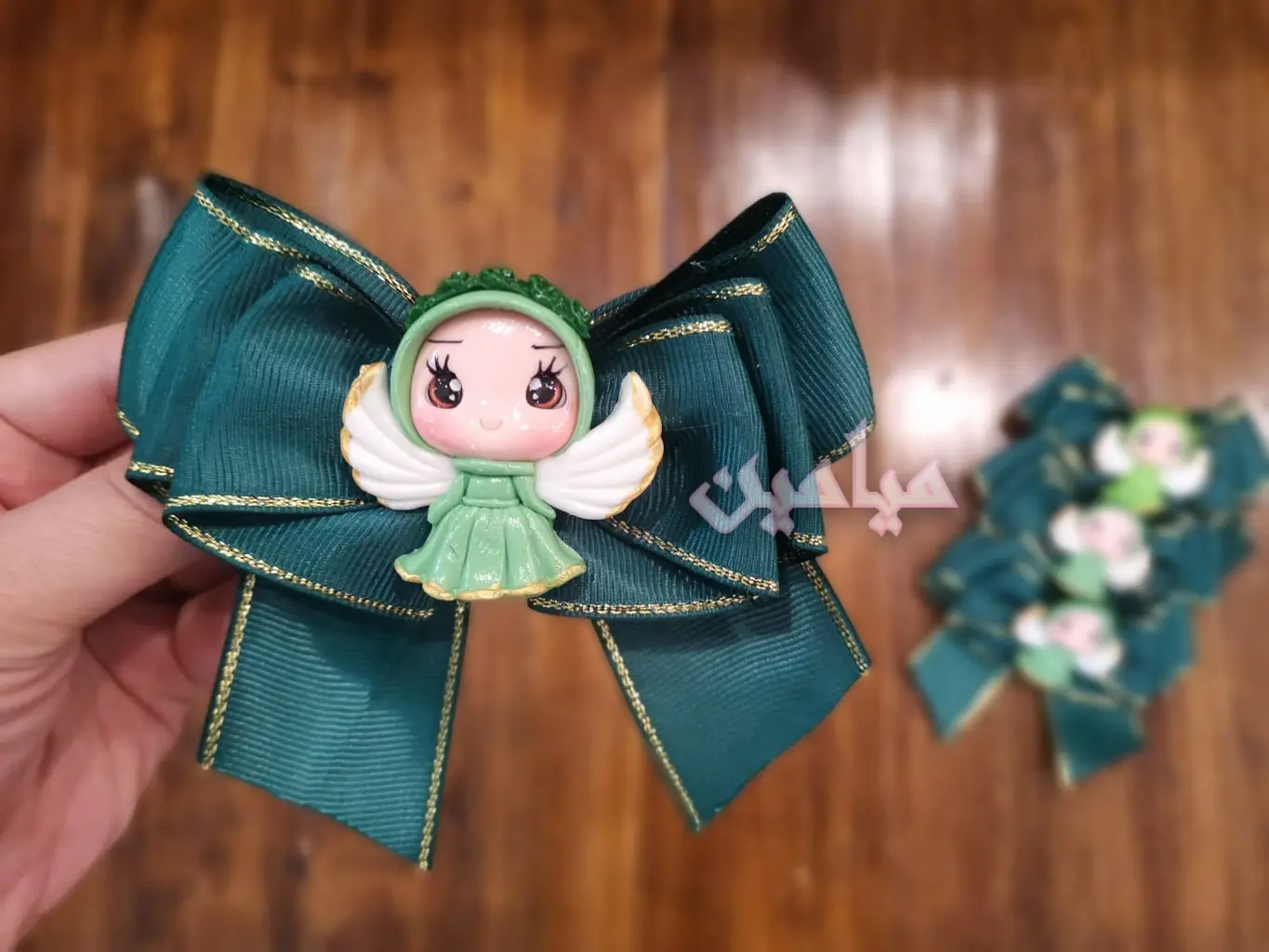 گیره موی سبز عروسکی مدل فرشته 😍 | پاپیونی | تنوع سه رنگ سبز جذاب | تک و عمده